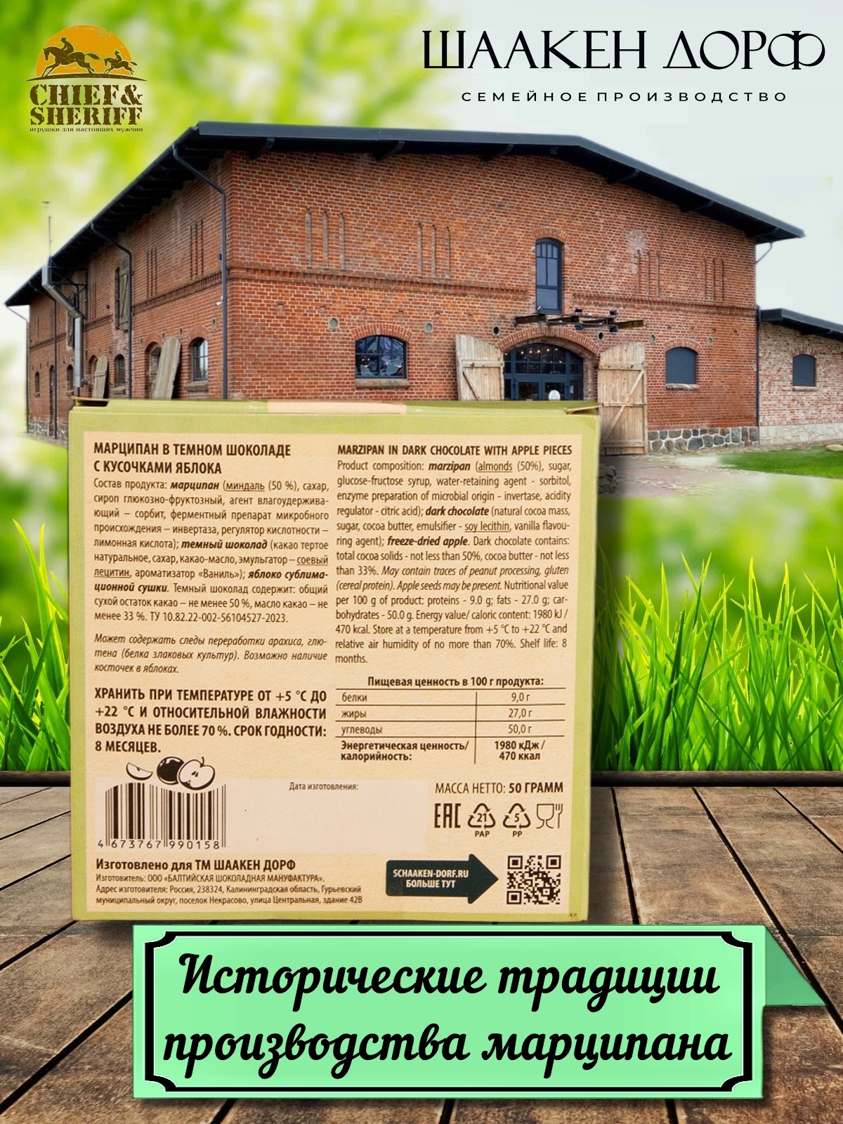 Марципановая плитка в темном шоколаде с яблоком, SCHAAKEN DORF, 3 X 50 гр