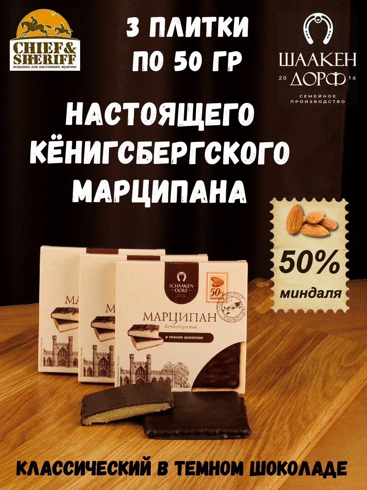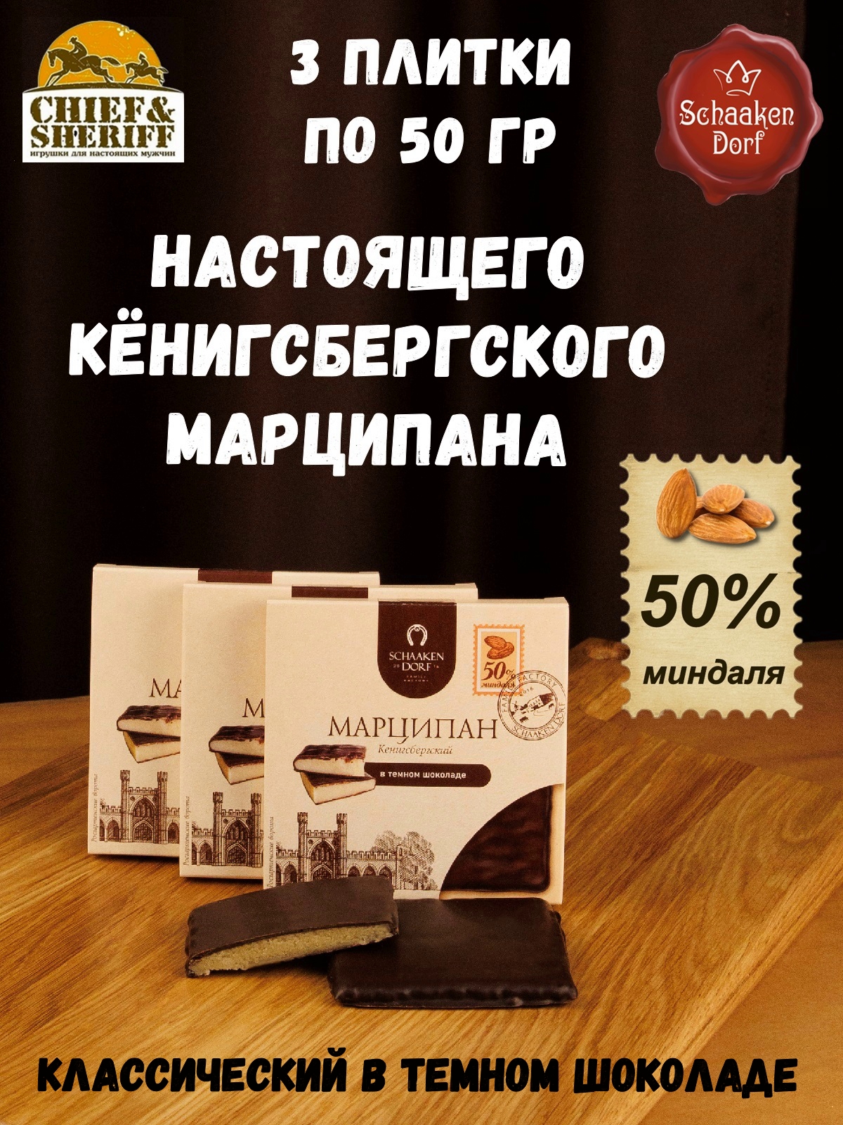 Марципановая плитка в темном шоколаде, SCHAAKEN DORF, 3 X 50 гр