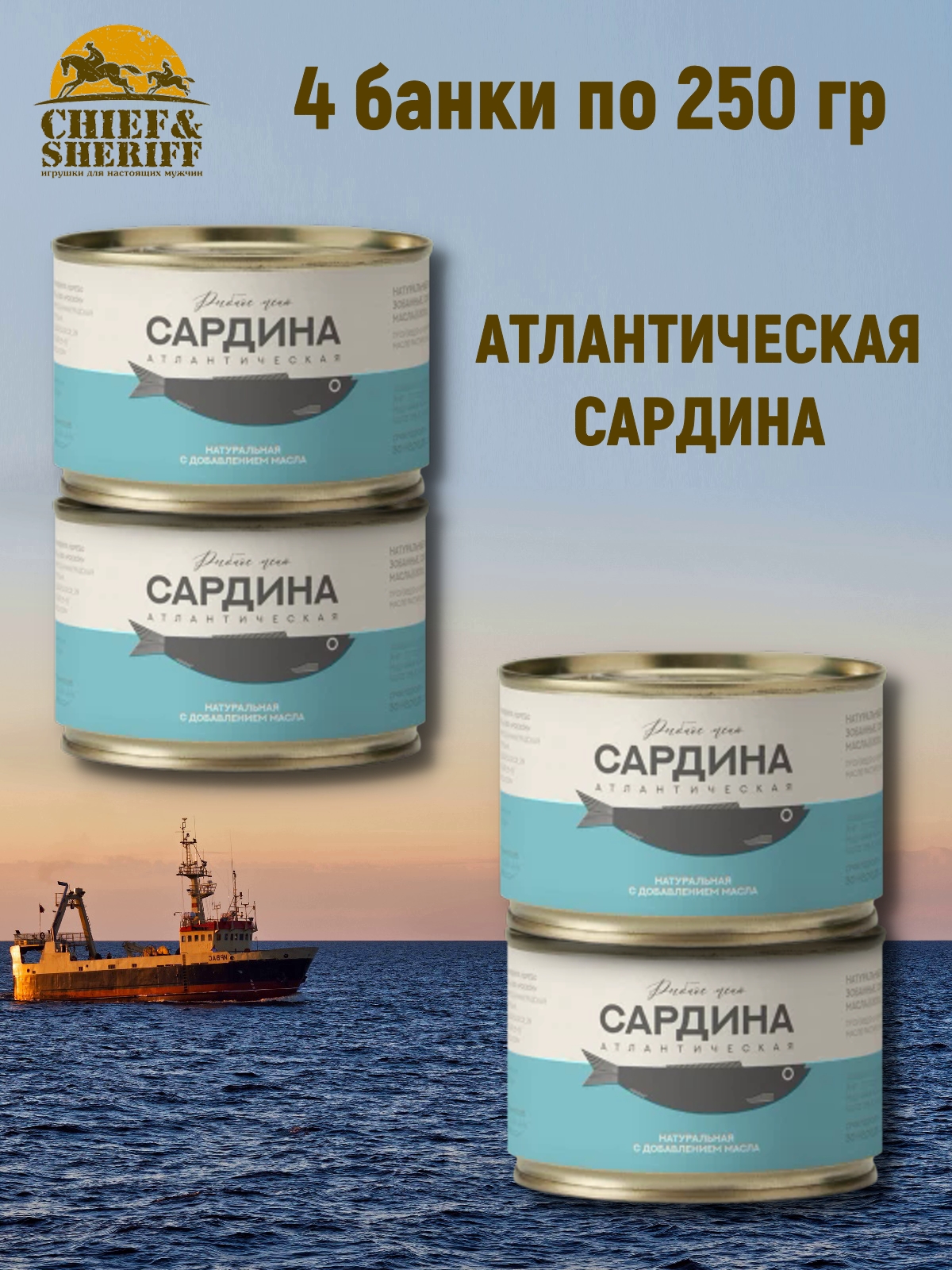 Сардина атлантическая с добавлением масла, Рыбное меню, 4 X 250 гр Сардина атлантическая с добавлением масла, Рыбное меню, 4 X 250 гр