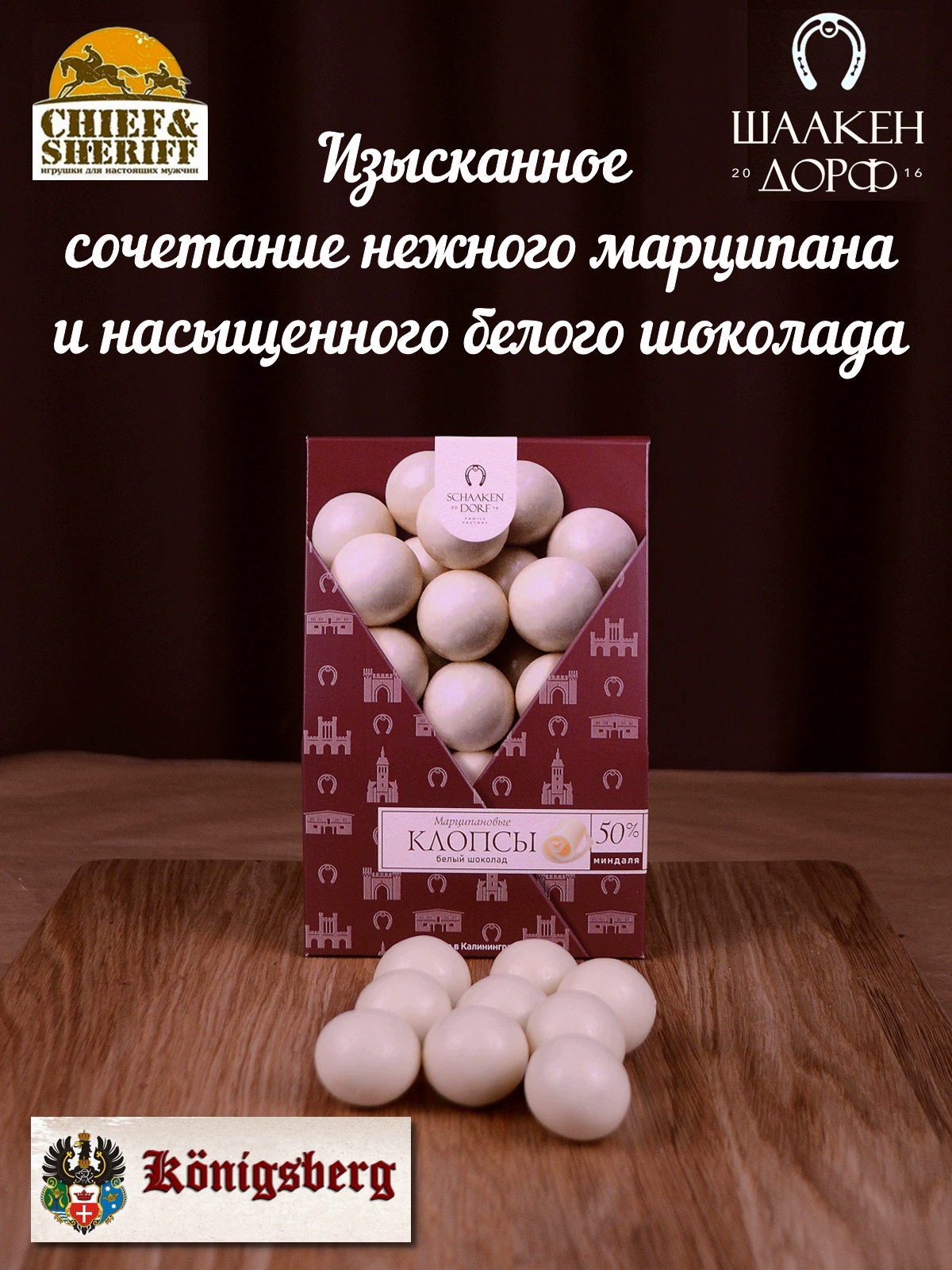Откройте для себя удивительный вкус марципановых клопсов в белом шоколаде от SCHAAKEN DORF. Эти уникальные кондитерские изделия подарят вам настоящее наслаждение. Каждый сет содержит 2 красивых упаковки по 150 граммов изысканных конфет, в которых гармонично сочетаются нежный калининградский марципан и насыщенный белый шоколад.