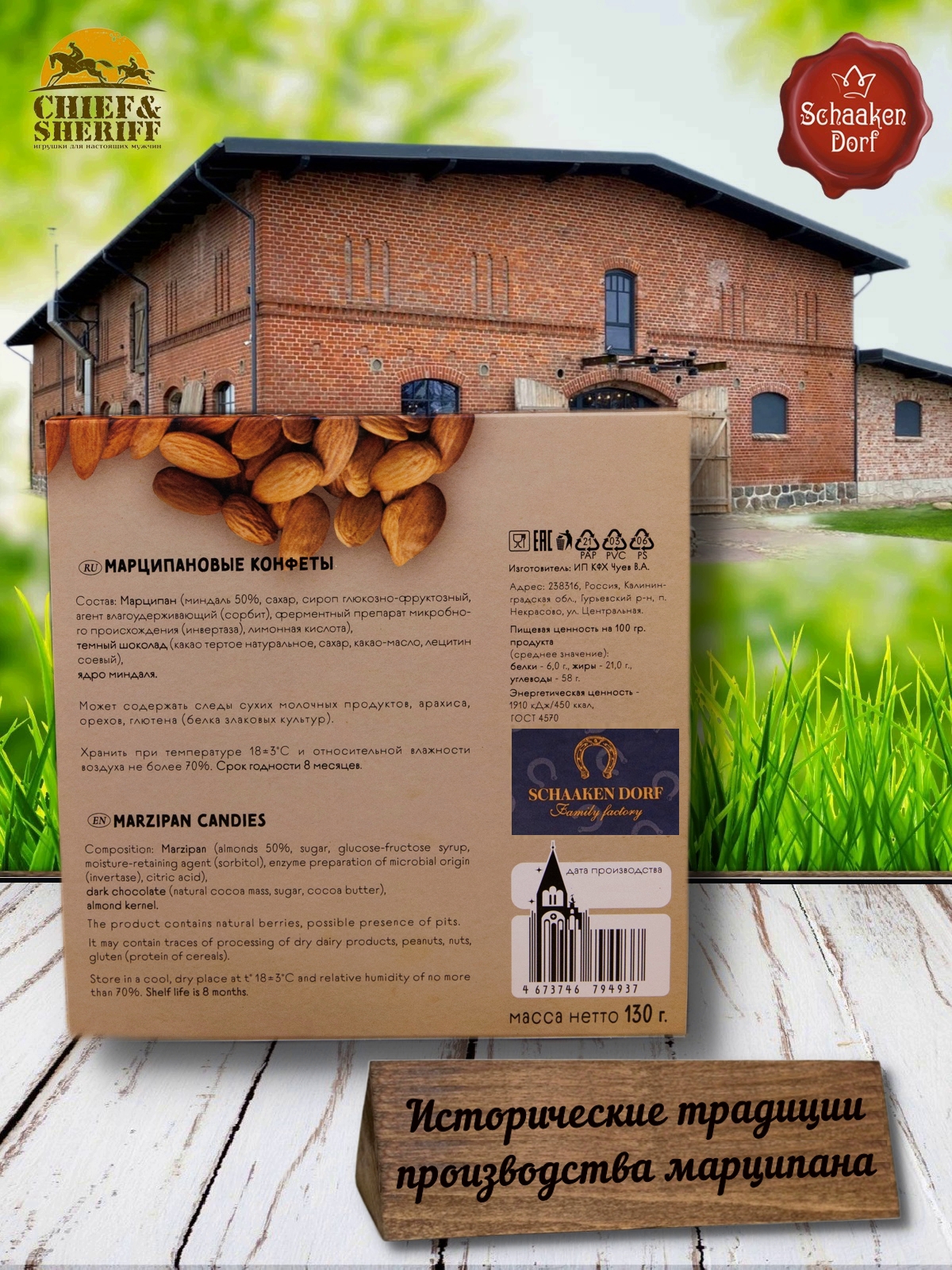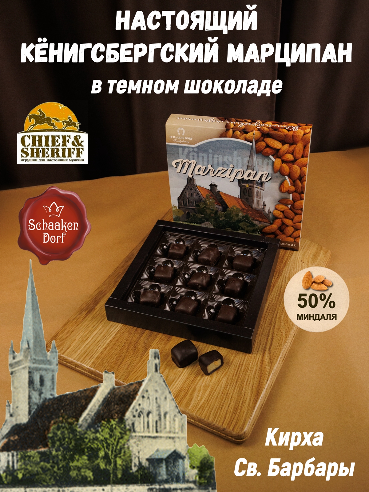 Шаакен Дорф - семейное производство сыра, марципана, шоколада, конфет и зефира. Производство компании Шаакен Дорф находится в Калининграде, в здании, которое когда-то было конюшней при замке Шаакен - рыцарей еще тевтонского ордена. Сейчас на первом этаже находится производство сыра. На втором этаже располагается небольшое кондитерское производство. Здесь вручную варится зефир, делаются карамелизированные апельсины в темном шоколаде, сублимированные ягоды, а также создается абсолютно разный и такой всеми полюбившийся калининградский марципан. В 2024 году, компания Шаакен Дорф стала победителем в номинациях «Лучшее туристическое направление года в номинации агротуризм», «Лучшее крестьянско-фермерское хозяйство», «Лучшее хозяйство в отрасли переработки молока», «Лучший объект туристического показа» и многих других! Марципан от Schaaken Dorf как минимум не уступает по качеству немецкому марципану от лучших производителей марципана из Германии. Попробуйте - и убедитесь сами!