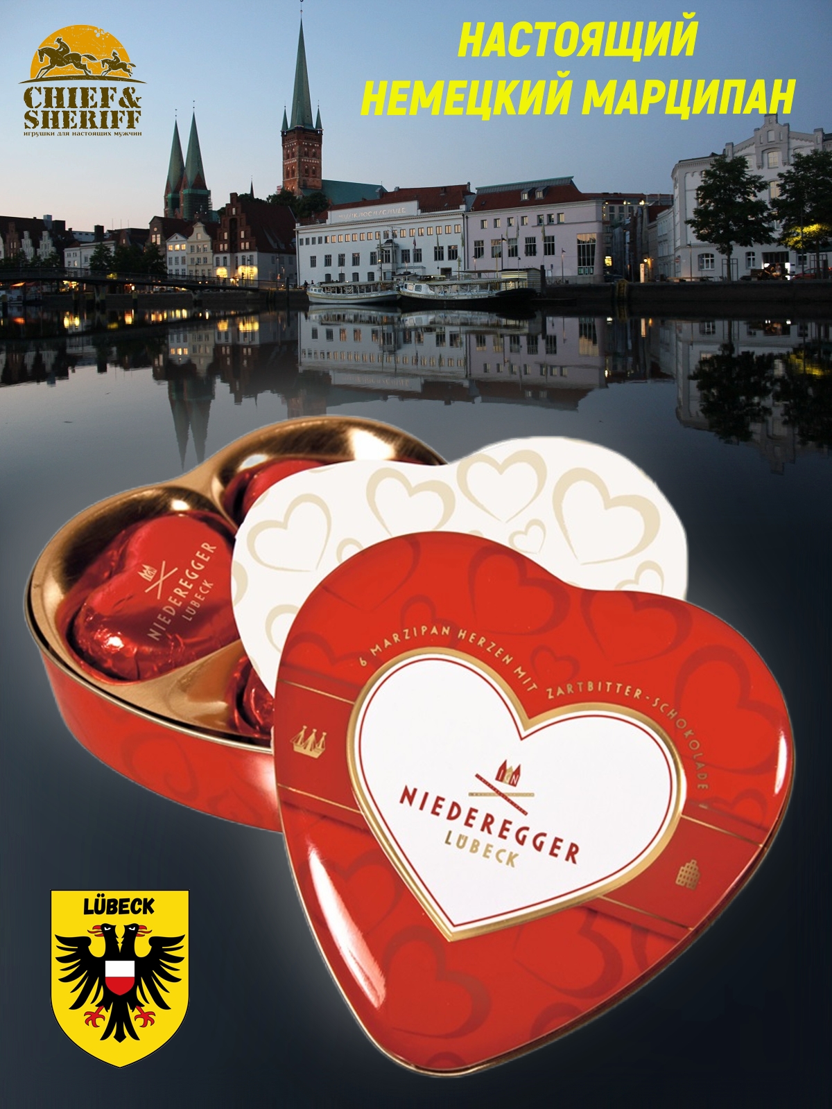 Подарок, сделанный от всего сердца! С помощью марципановых сердечек от Niederegger вы сможете показать, как сильно вы заботитесь о получателе. Декоративная металлическая банка наполнена шестью изысканными марципановыми шоколадными конфетами в форме сердца. Вкусные сердечки сделаны из сочного, мягкого марципана (74%) и покрыты слоем темного шоколада.