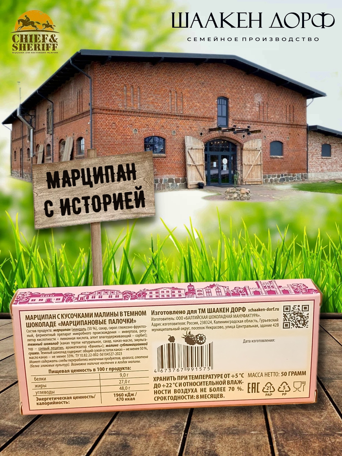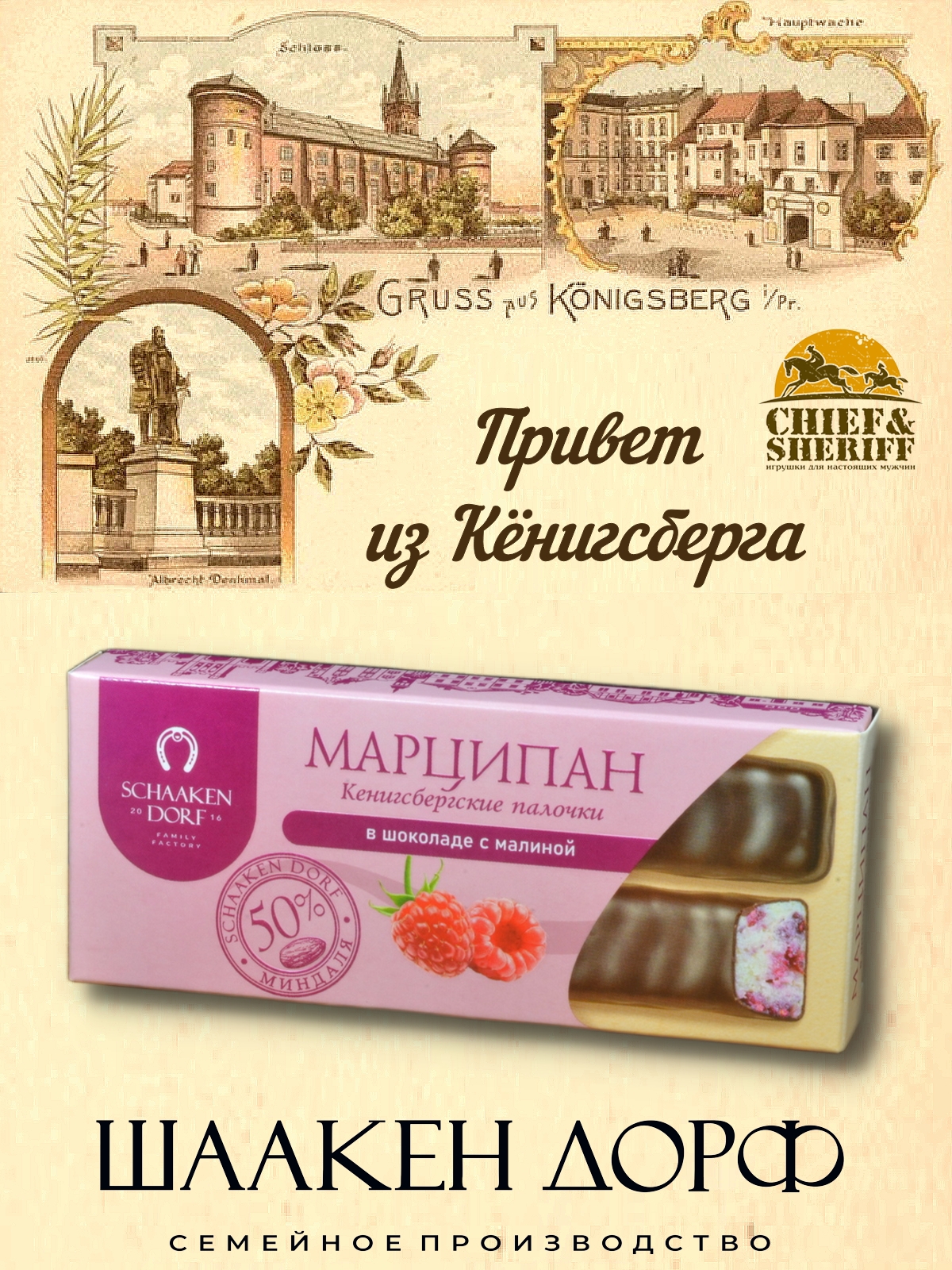 Кёнигсбергские палочки - это настоящий высококачественный марципан с содержанием миндаля 50%. Они с любовью изготовлены на семейном предприятии Шаакен Дорф, расположенном в Калининградской области, в здании, которое когда-то было конюшней при замке Шаакен. Сейчас здесь находится производство сыра, марципана, шоколада, конфет и зефира. В 2024 году, компания Шаакен Дорф стала победителем в номинациях «Лучшее туристическое направление года в номинации агротуризм», «Лучшее крестьянско-фермерское хозяйство»,  и многих других!