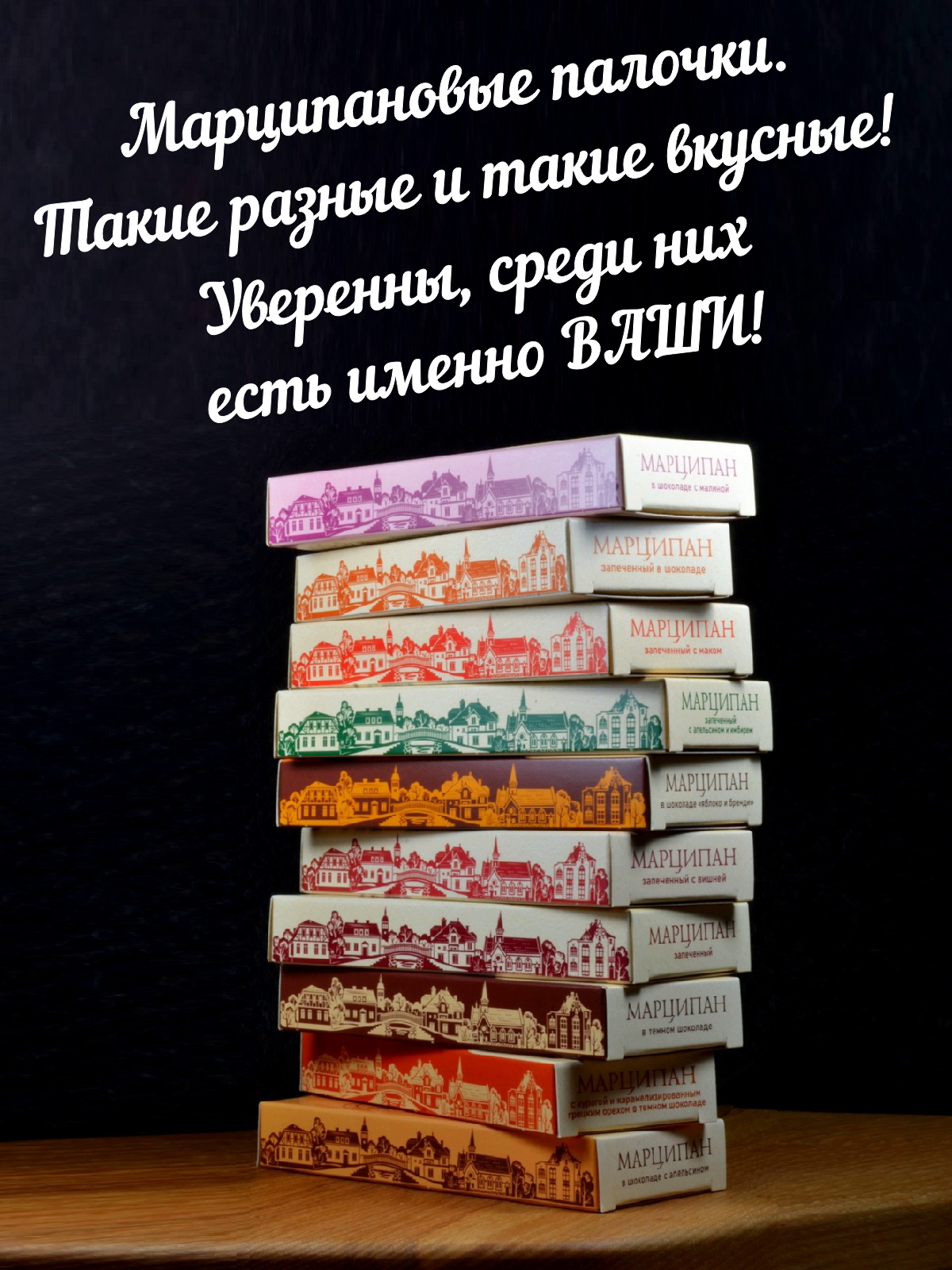 Каждый сет содержит три коробочки марципановых палочек, что делает их удобными для хранения и транспортировки. Это отличное лакомство, которое можно взять с собой на прогулку, в офис или в поездку. Девиз серии -  Gruss aus Königsberg (Привет из Кёнигсберга) - полностью оправдан. Марципановые палочки также могут стать замечательным подарком на Новый год, 8 марта, День влюбленных, благодаря своей оригинальной упаковке.