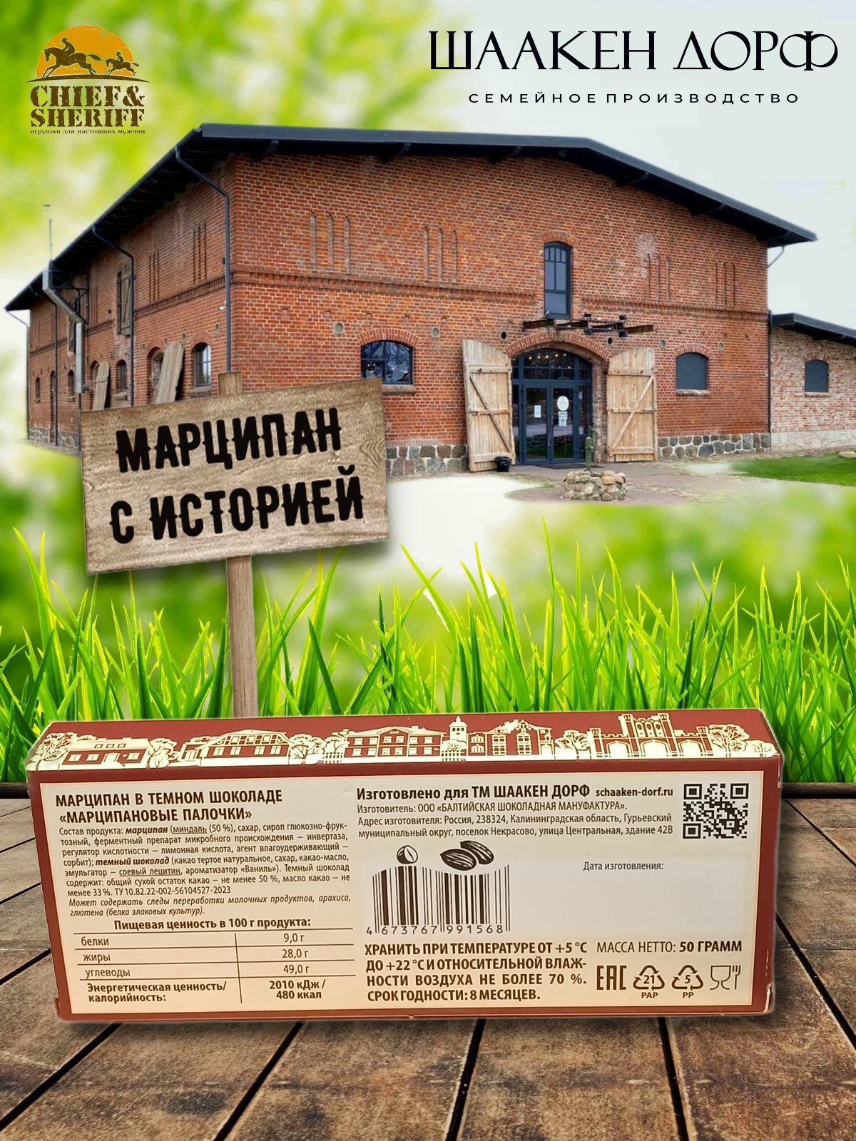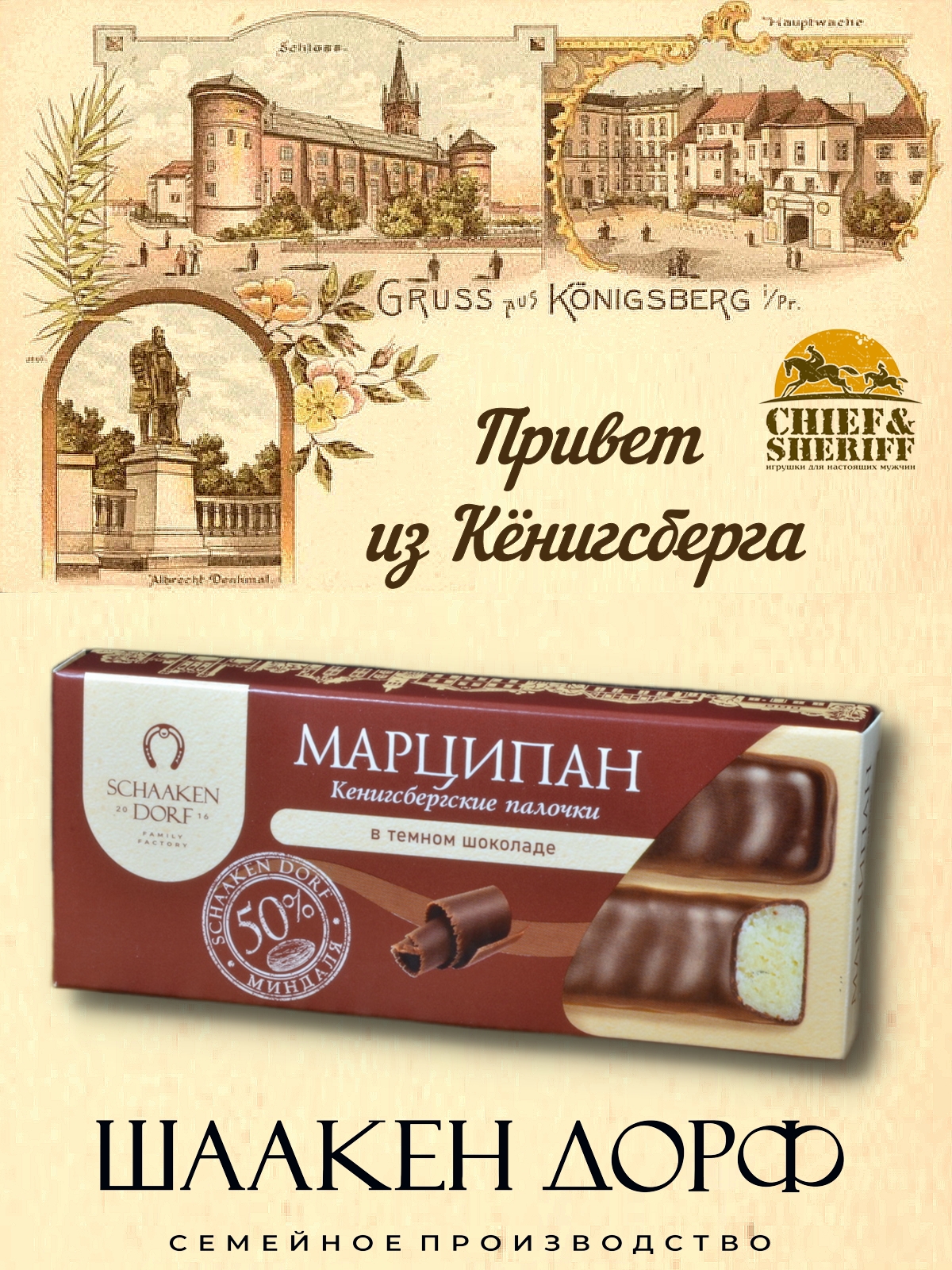 Кёнигсбергские палочки - это настоящий высококачественный марципан с содержанием миндаля 50%. Они с любовью изготовлены на семейном предприятии Шаакен Дорф, расположенном в Калининградской области, в здании, которое когда-то было конюшней при замке Шаакен. Сейчас здесь находится производство сыра, марципана, шоколада, конфет и зефира. В 2024 году, компания Шаакен Дорф стала победителем в номинациях «Лучшее туристическое направление года в номинации агротуризм», «Лучшее крестьянско-фермерское хозяйство»,  и многих других!