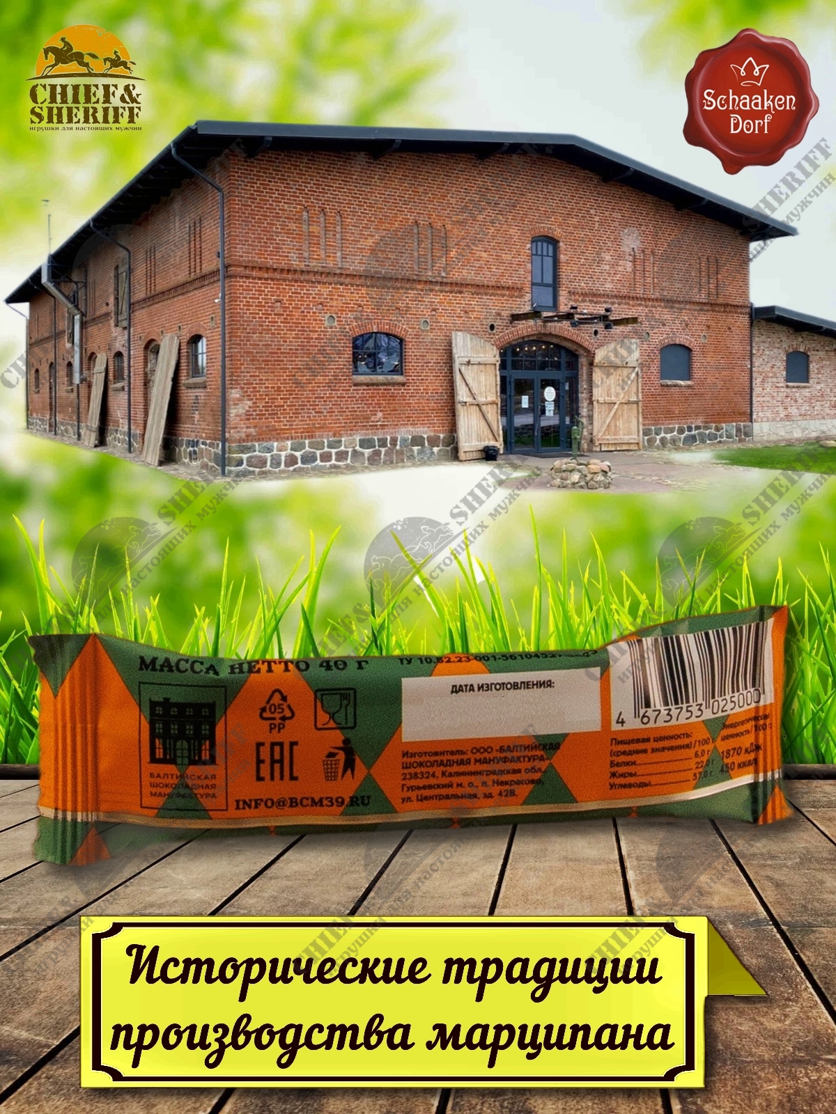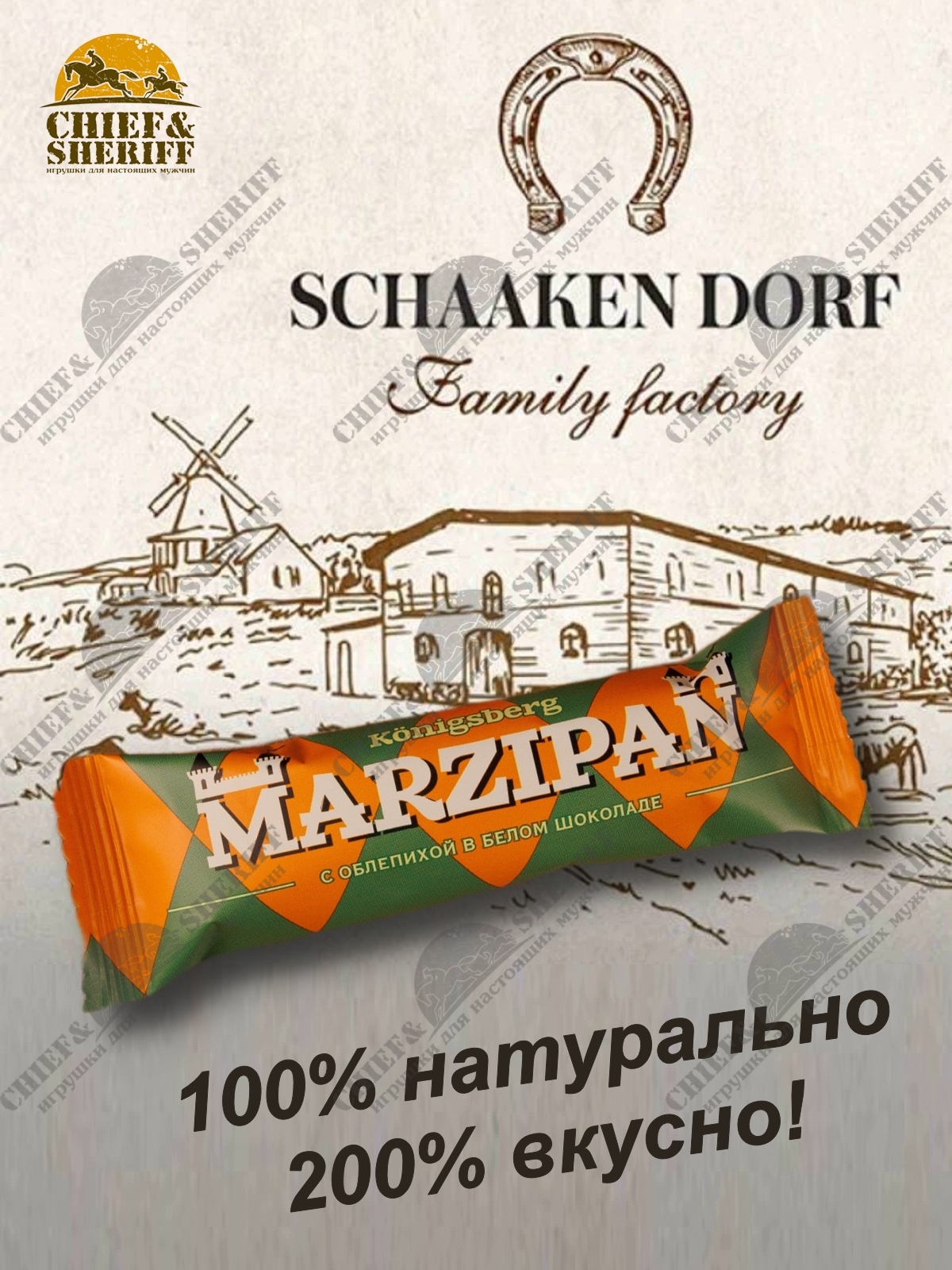 Шаакен Дорф - семейное производство сыра, марципана, шоколада, конфет и зефира, расположенное в Калининграде. Предприятие является обладателем многочисленных наград не только в области переработки молока и изготовлении кондитерских изделий, но и в агротуризме. Марципан от Schaaken Dorf как минимум не уступает по качеству немецкому марципану от лучших производителей марципана из Германии. Попробуйте - и убедитесь сами!