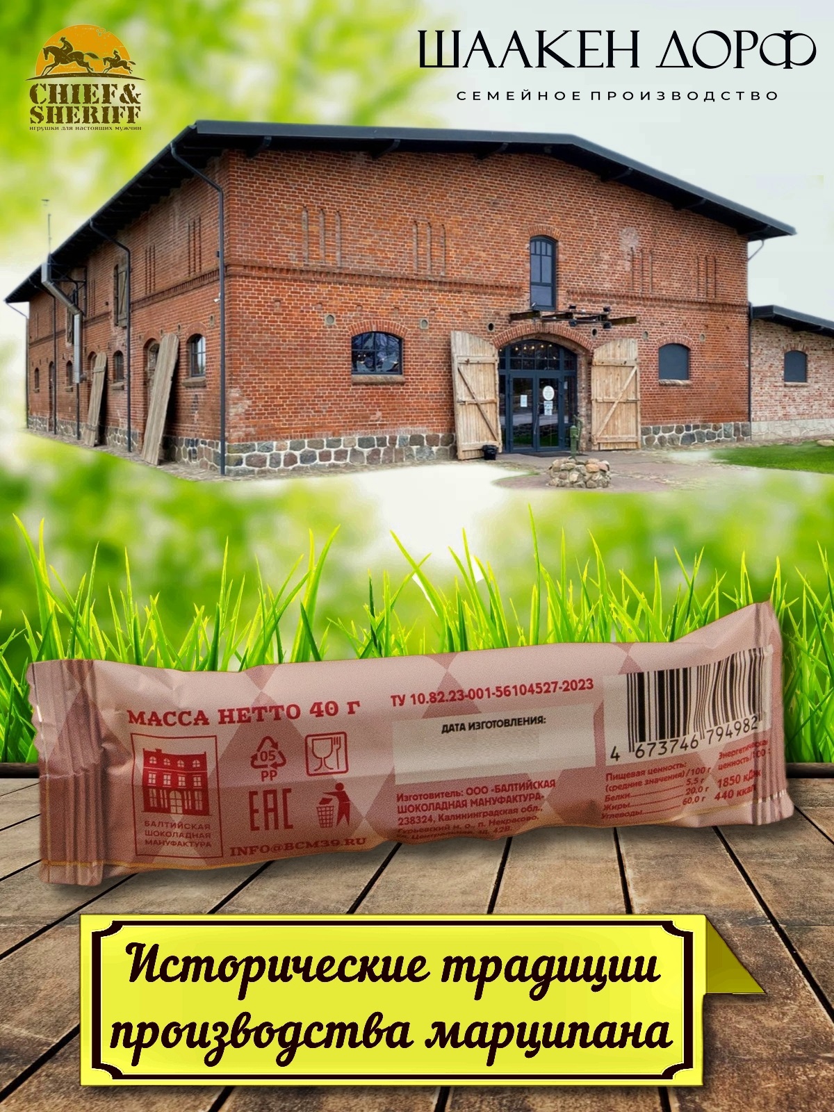 Шаакен Дорф - семейное производство сыра, марципана, шоколада, конфет и зефира, расположенное в Калининграде. Предприятие является обладателем многочисленных наград не только в области переработки молока и изготовлении кондитерских изделий, но и в агротуризме. Марципан от Schaaken Dorf как минимум не уступает по качеству немецкому марципану от лучших производителей марципана из Германии. Попробуйте - и убедитесь сами!