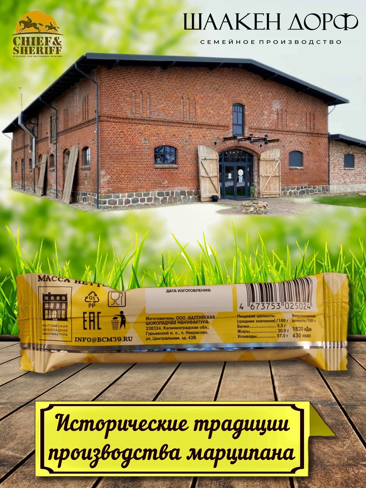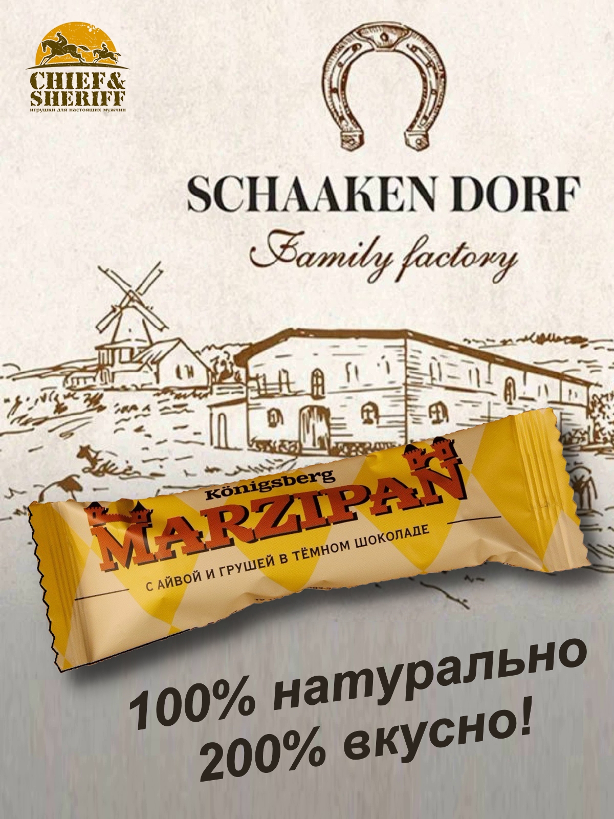 Шаакен Дорф - семейное производство сыра, марципана, шоколада, конфет и зефира, расположенное в Калининграде. Предприятие является обладателем многочисленных наград не только в области переработки молока и изготовлении кондитерских изделий, но и в агротуризме. Марципан от Schaaken Dorf как минимум не уступает по качеству немецкому марципану от лучших производителей марципана из Германии. Попробуйте - и убедитесь сами!