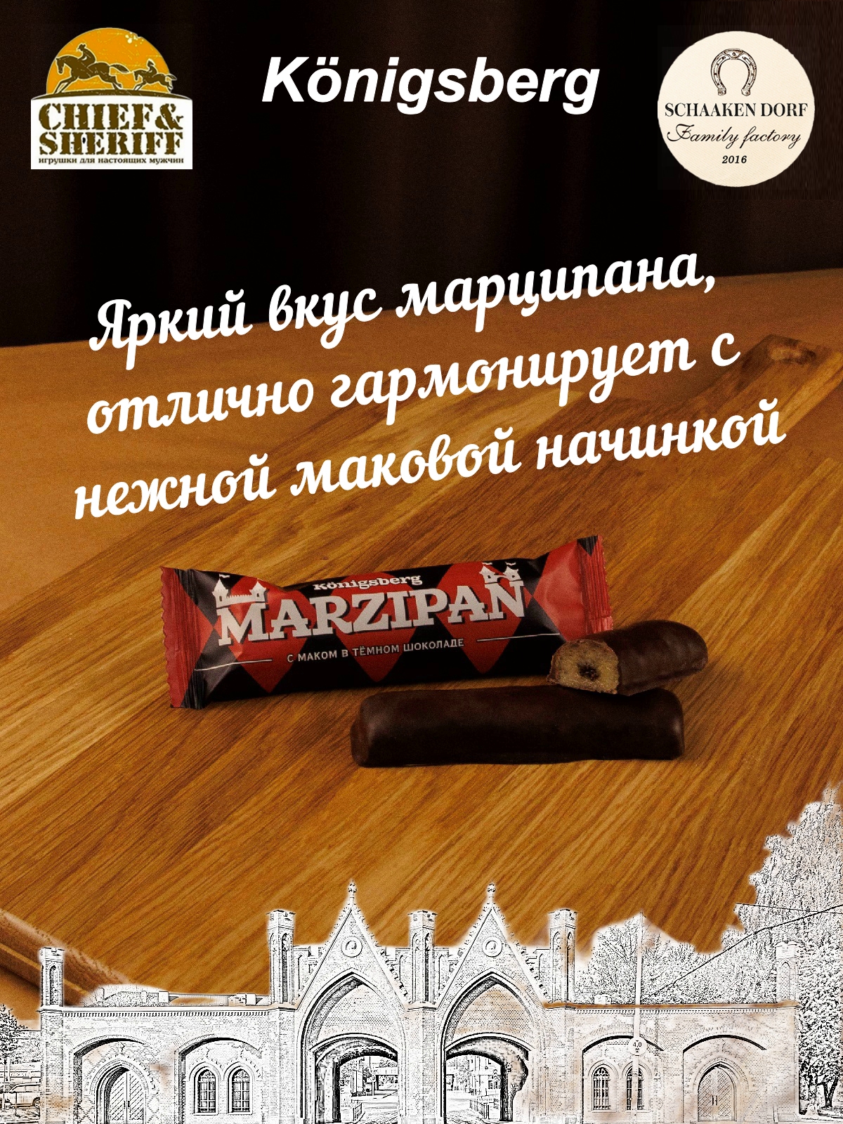 Калининградский марципановый батончик, покрытый темным шоколадом с маком- это изысканное лакомство, которое подарит вам незабываемое удовольствие от вкуса. Каждый батончик весом 40 граммов изготовлен с любовью и вниманием к деталям, что делает его идеальным выбором для сладкоежек и ценителей качественных кондитерских изделий.