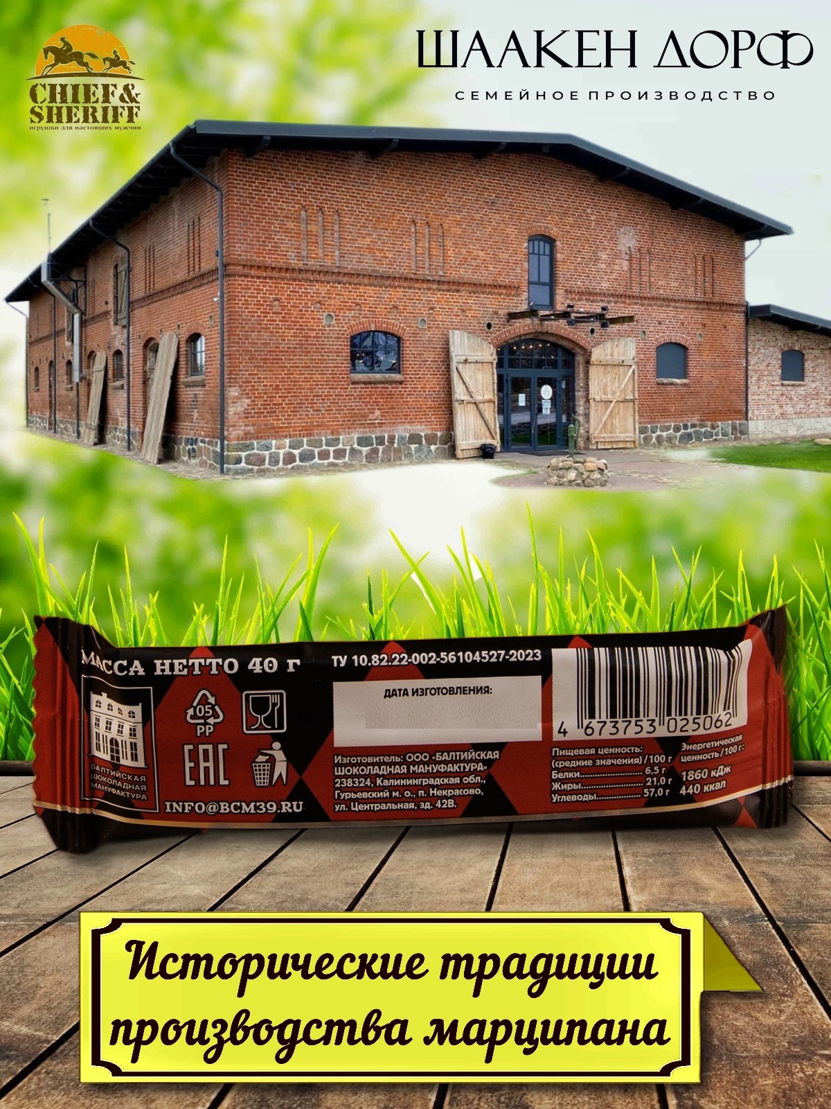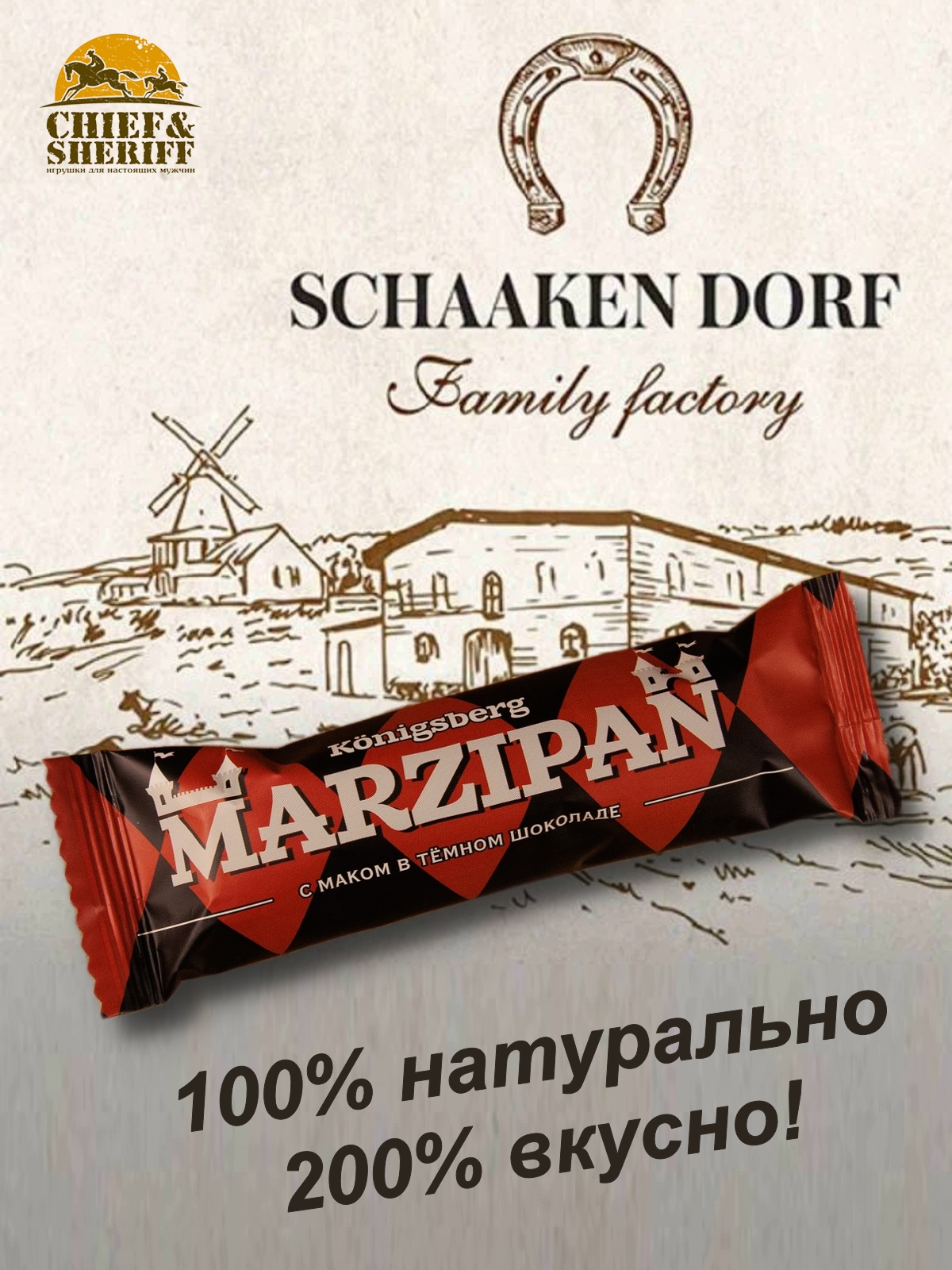 Шаакен Дорф - семейное производство сыра, марципана, шоколада, конфет и зефира, расположенное в Калининграде. Предприятие является обладателем многочисленных наград не только в области переработки молока и изготовлении кондитерских изделий, но и в агротуризме. Марципан от Schaaken Dorf как минимум не уступает по качеству немецкому марципану от лучших производителей марципана из Германии. Попробуйте - и убедитесь сами!
