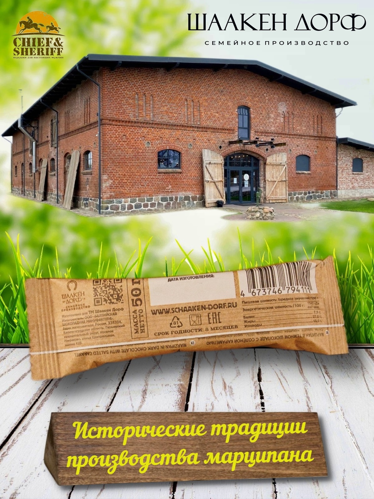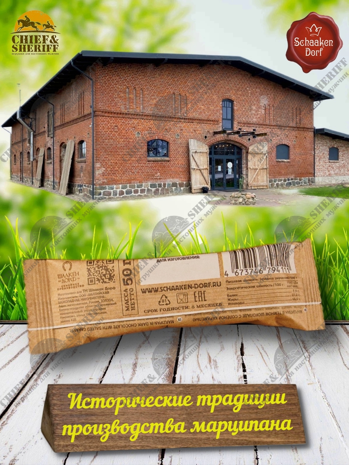 Шаакен Дорф - семейное производство сыра, марципана, шоколада, конфет и зефира, расположенное в Калининграде. Предприятие является обладателем многочисленных наград не только в области переработки молока и изготовлении кондитерских изделий, но и в агротуризме. Марципан от Schaaken Dorf как минимум не уступает по качеству немецкому марципану от лучших производителей марципана из Германии. Попробуйте - и убедитесь сами!