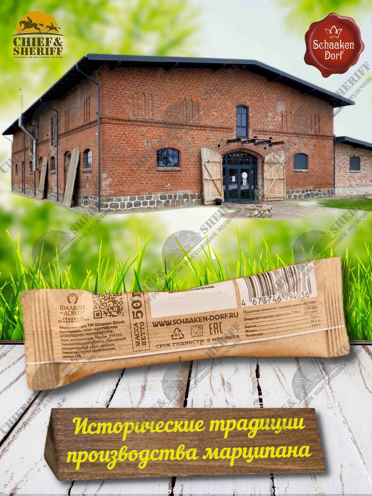Шаакен Дорф - семейное производство сыра, марципана, шоколада, конфет и зефира. Производство компании Шаакен Дорф находится в Калининграде, в здании, которое когда-то было конюшней при замке Шаакен - рыцарей еще тевтонского ордена. Сейчас на первом этаже находится производство сыра. На втором этаже располагается небольшое кондитерское производство. Здесь вручную варится зефир, делаются карамелизированные апельсины в темном шоколаде, сублимированные ягоды, а также создается абсолютно разный и такой всеми полюбившийся калининградский марципан. В 2024 году, компания Шаакен Дорф стала победителем в номинациях «Лучшее туристическое направление года в номинации агротуризм», «Лучшее крестьянско-фермерское хозяйство», «Лучшее хозяйство в отрасли переработки молока» и многих других! Марципан от Schaaken Dorf как минимум не уступает по качеству немецкому марципану от лучших производителей марципана из Германии. Попробуйте - и убедитесь сами!