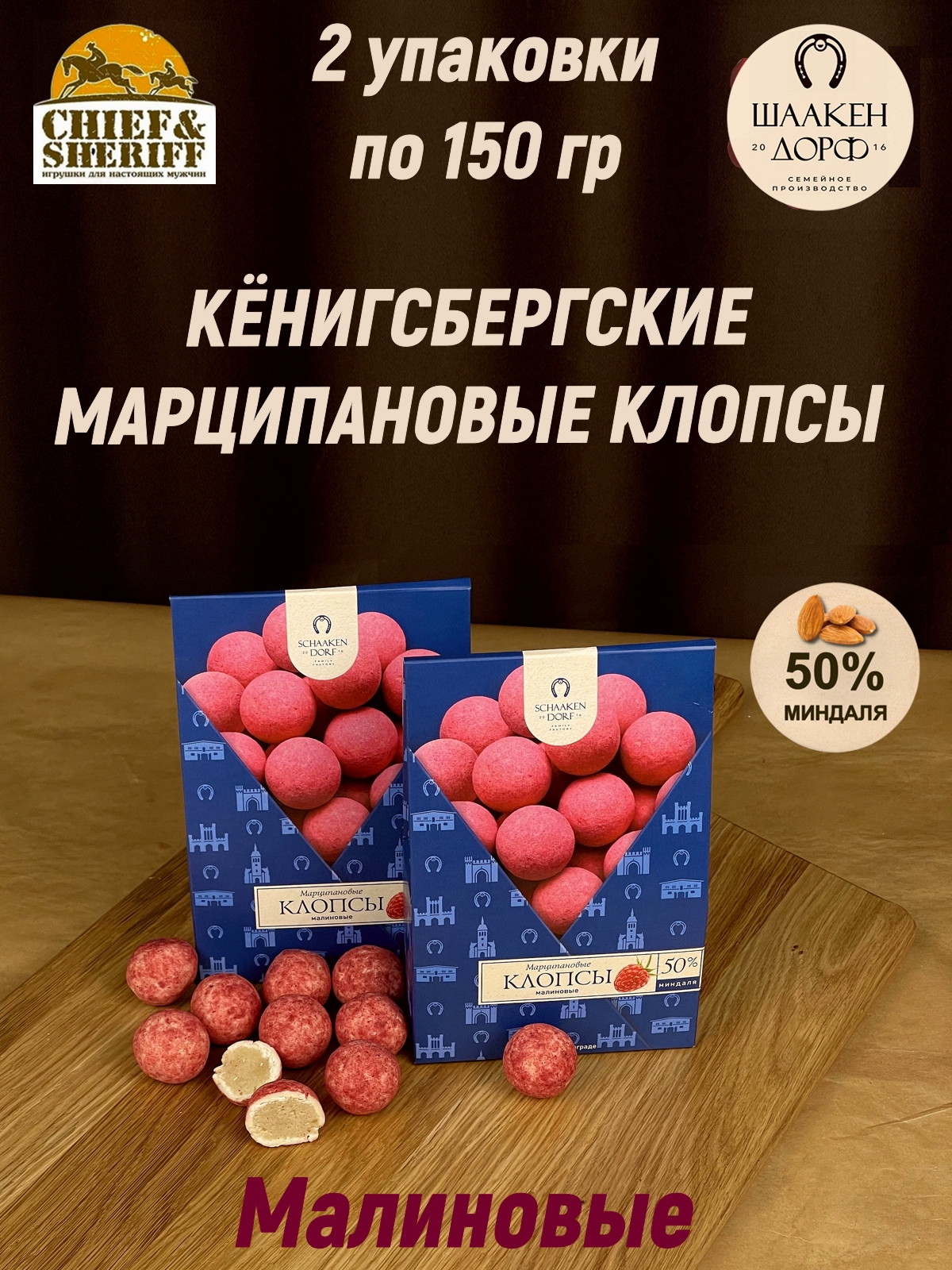 Откройте для себя удивительный вкус марципановых клопсов с малиной от SCHAAKEN DORF. Эти уникальные кондитерские изделия подарят вам настоящее наслаждение. Каждый сет содержит 2 красивых упаковки по 150 граммов изысканных конфет, в которых гармонично сочетаются нежный калининградский марципан, белый шоколад и малина.