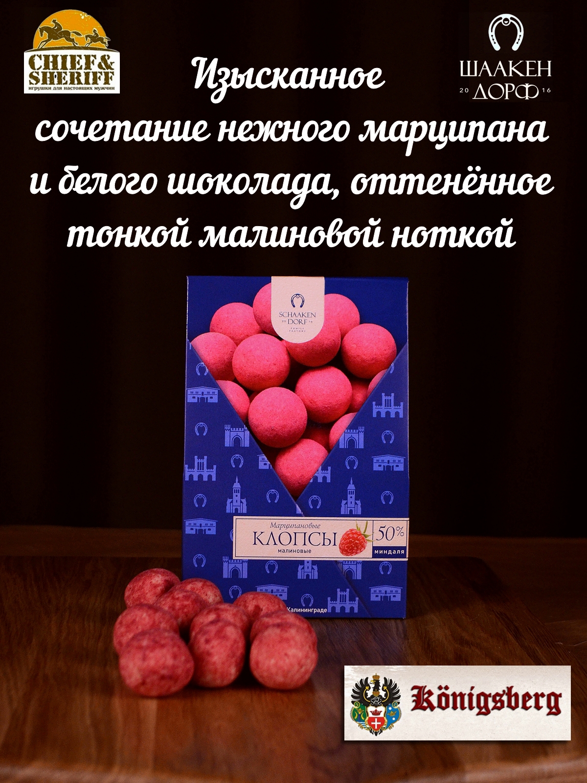 Произведенные в Калининграде, эти марципановые клопсы с малиной станут идеальным дополнением к вашему десертному столу или отличным угощением к чаю. Нежный вкус марципана в сочетании с белым шоколадом, оттененный малиной, создаёт незабываемый букет ароматов и текстур. В каждой конфете ощущается забота и внимание к качеству ингредиентов, что делает их не только вкусными, но и безопасными.