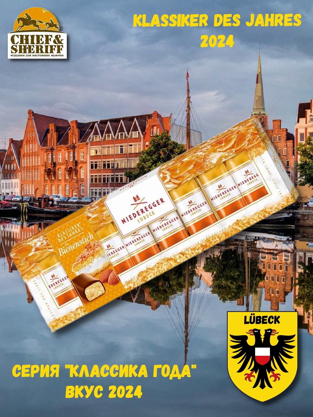 Марципан 2024 года от Niederegger очаровывает сочетанием супер-сливочного вкуса карамели, кусочков жареного миндаля и изысканного марципана, покрытого нежным молочным шоколадом. Прототипом этого эксклюзивного десерта стал немецкий торт с необычным названием Bienenstich ("Укус пчелы"), который состоит из коржей из дрожжевого теста с медово-миндальной корочкой и заварным ванильным кремом.
