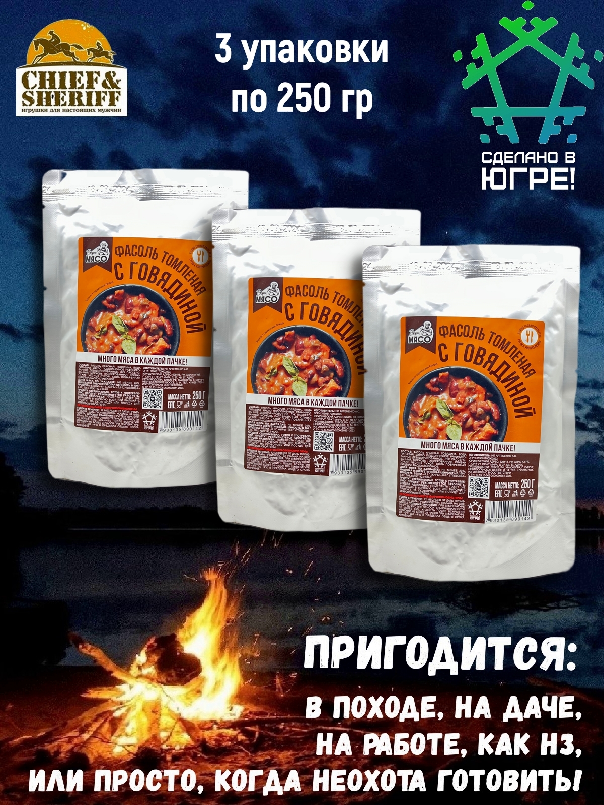 Готовая еда фасоль томленая с говядиной, Вкусно! МЯСО, 3 X 250 гр