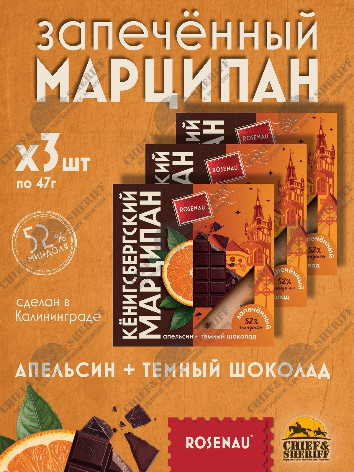 Марципан запеченный с апельсином и темным шоколадом (миндаль 52%), ROSENAU, 3 X 50 гр Марципан запеченный с апельсином и темным шоколадом (миндаль 52%), ROSENAU, 3 X 50 гр