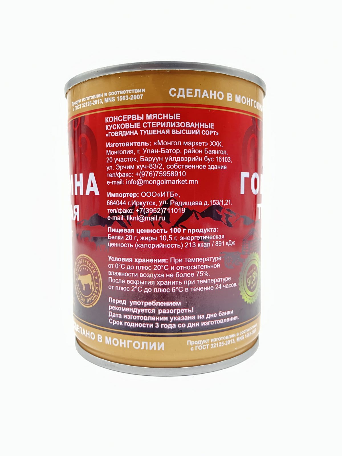 Говядина тушеная высший сорт, Монгол Маркет - это продукт, который имеет все необходимые сертификаты качества. Он не содержит никаких добавок и ароматизаторов, что делает его безопасным для потребления людьми всех возрастов.
