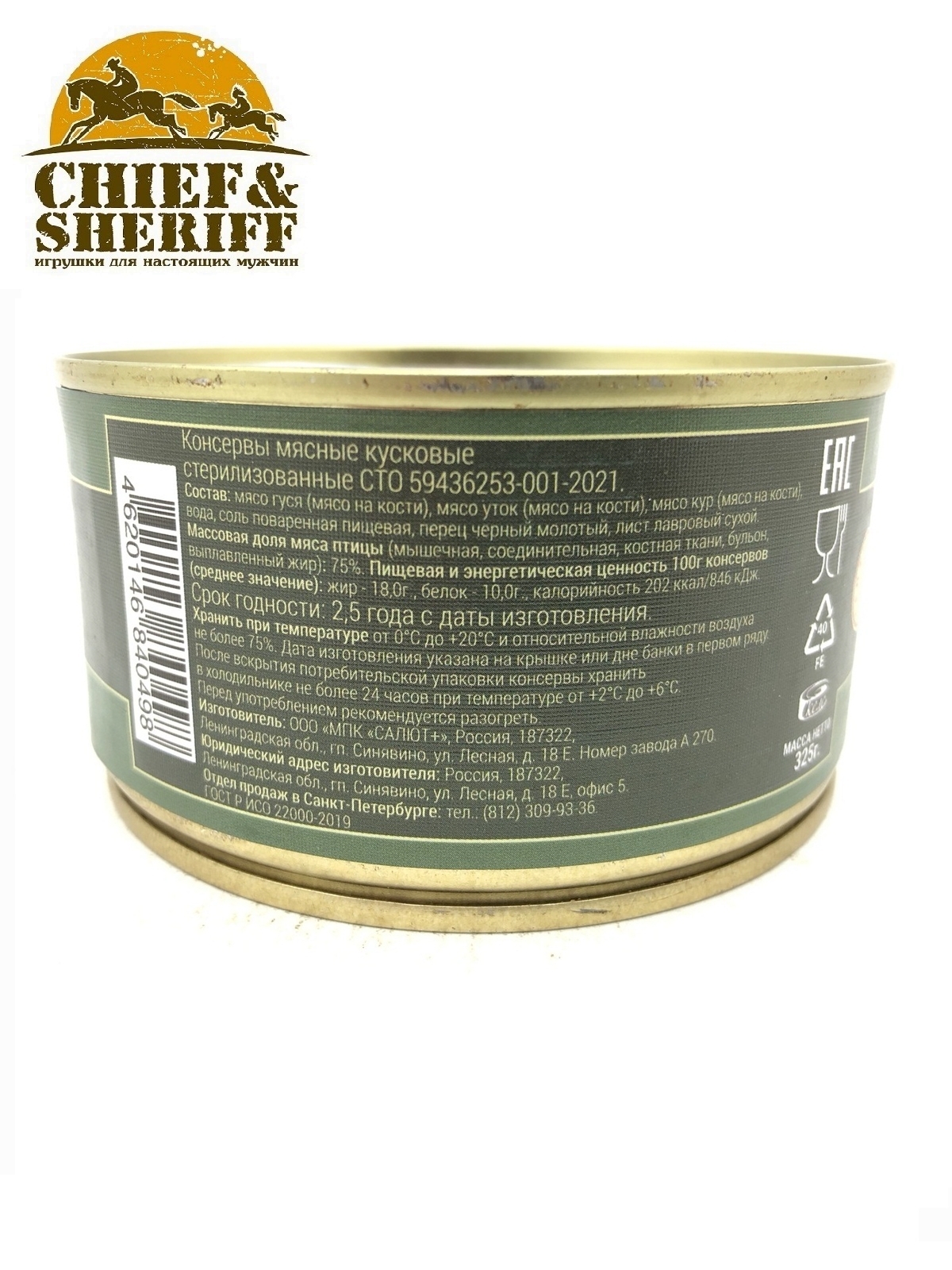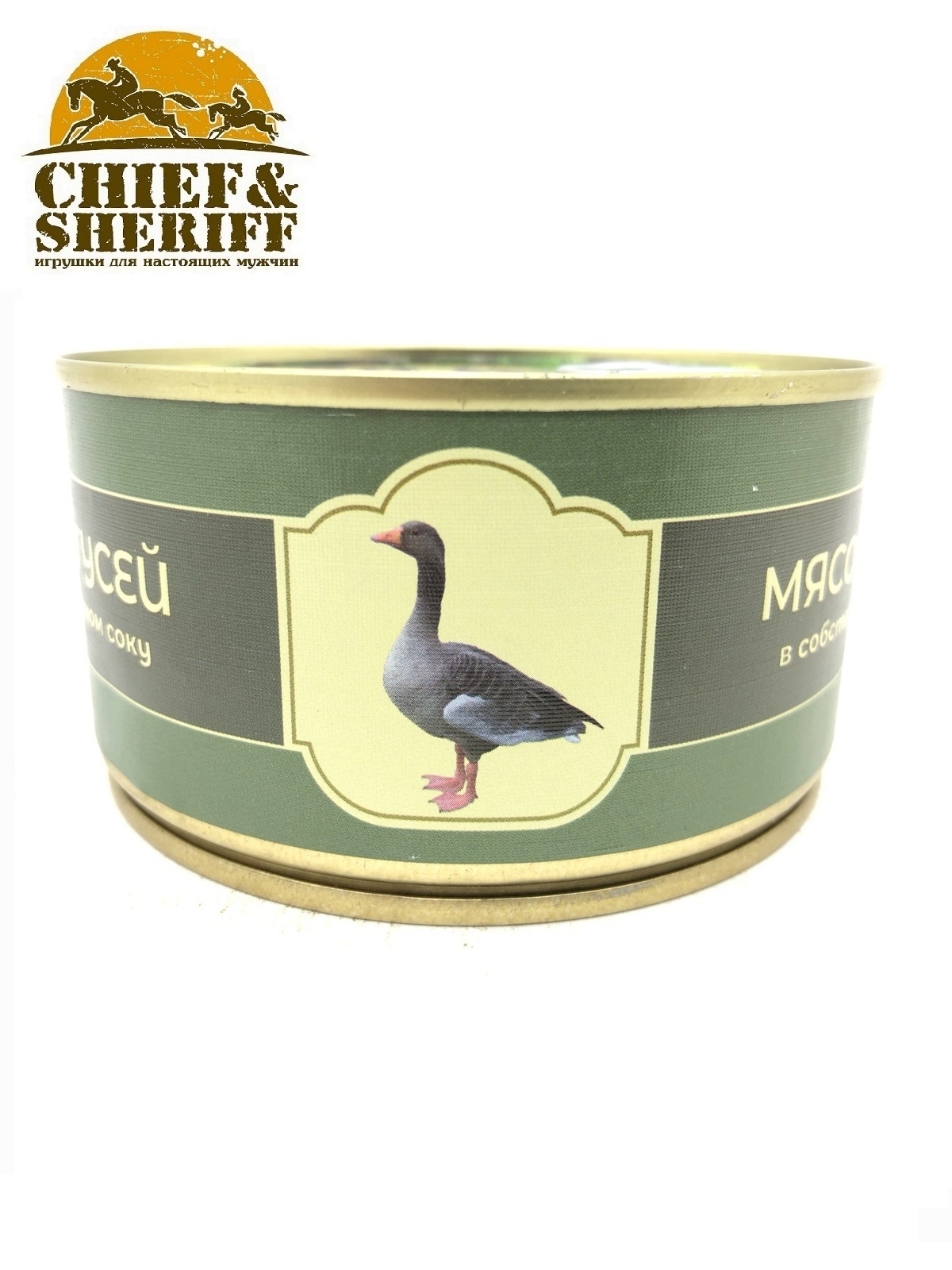 Мясо гусей в собственном соку упаковано в удобные консервные банки по 325 грамм каждая. Это позволяет сохранить все полезные свойства продукта и наслаждаться его вкусом в любое время.