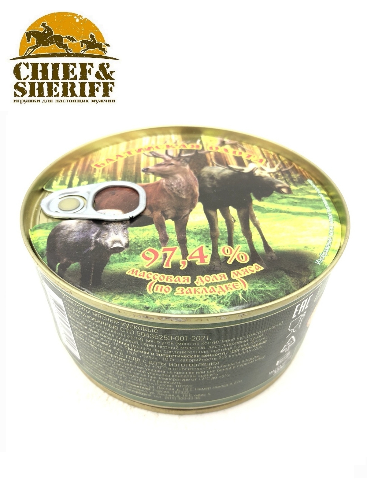 Мясо гусей в собственном соку от Балтийская охота - это высококачественные консервы, приготовленные из отборного мяса гусей, утки и куриной грудки. В составе также присутствуют морковь, соль, перец и лавровый лист, что придает продукту насыщенный вкус и аромат.