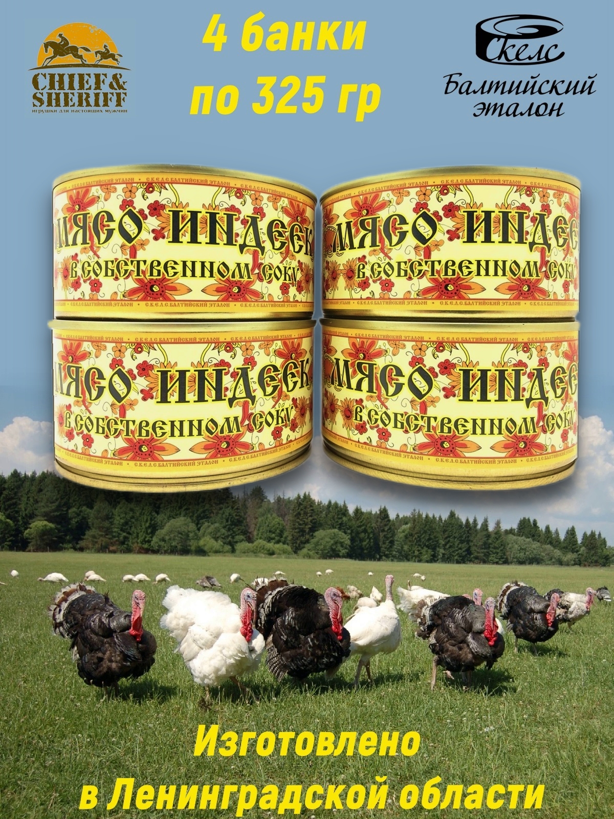 Мясо индейки в собственном соку, Балтийский эталон, 4 x 325 г