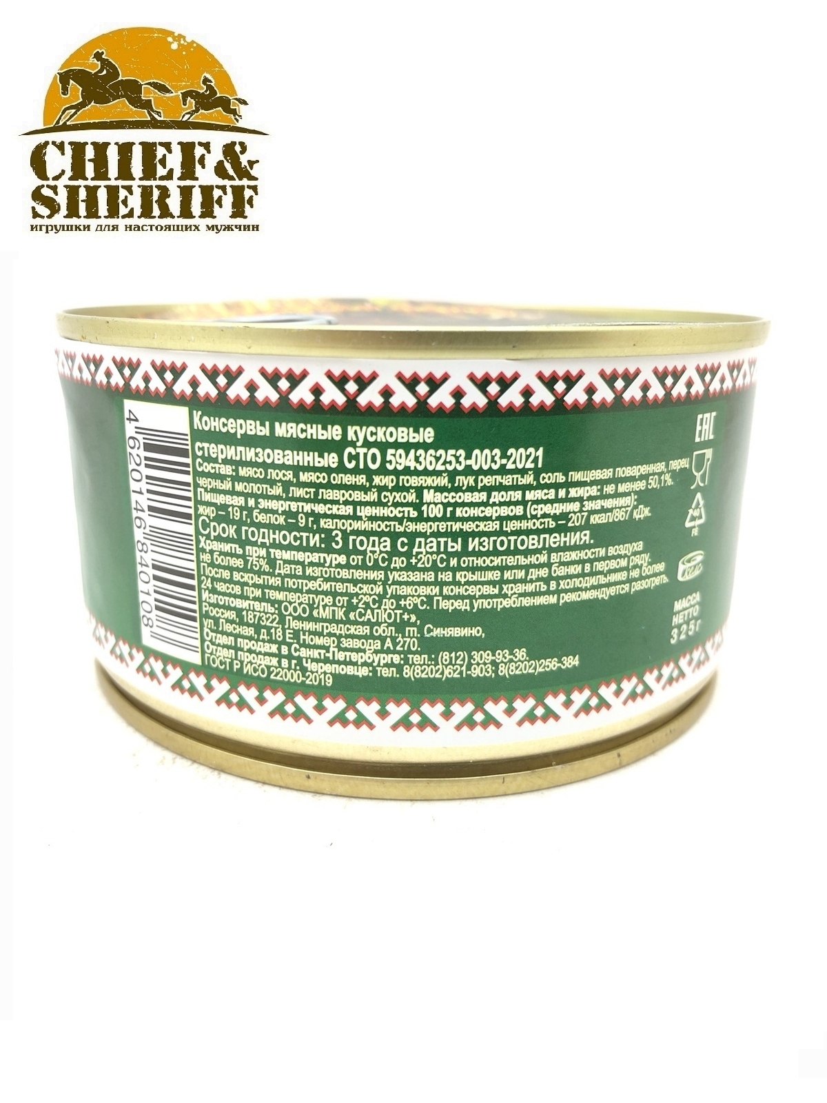 Тушеное мясо лося от "Балтийская охота" - это высококачественный продукт, который придется по вкусу любителям мясных консервов. Мясо лося, входящее в состав консервов, отличается высоким содержанием белка и полезных микроэлементов. Благодаря этому, оно способствует укреплению иммунитета, улучшению работы сердечно-сосудистой системы и повышению общего тонуса организма.