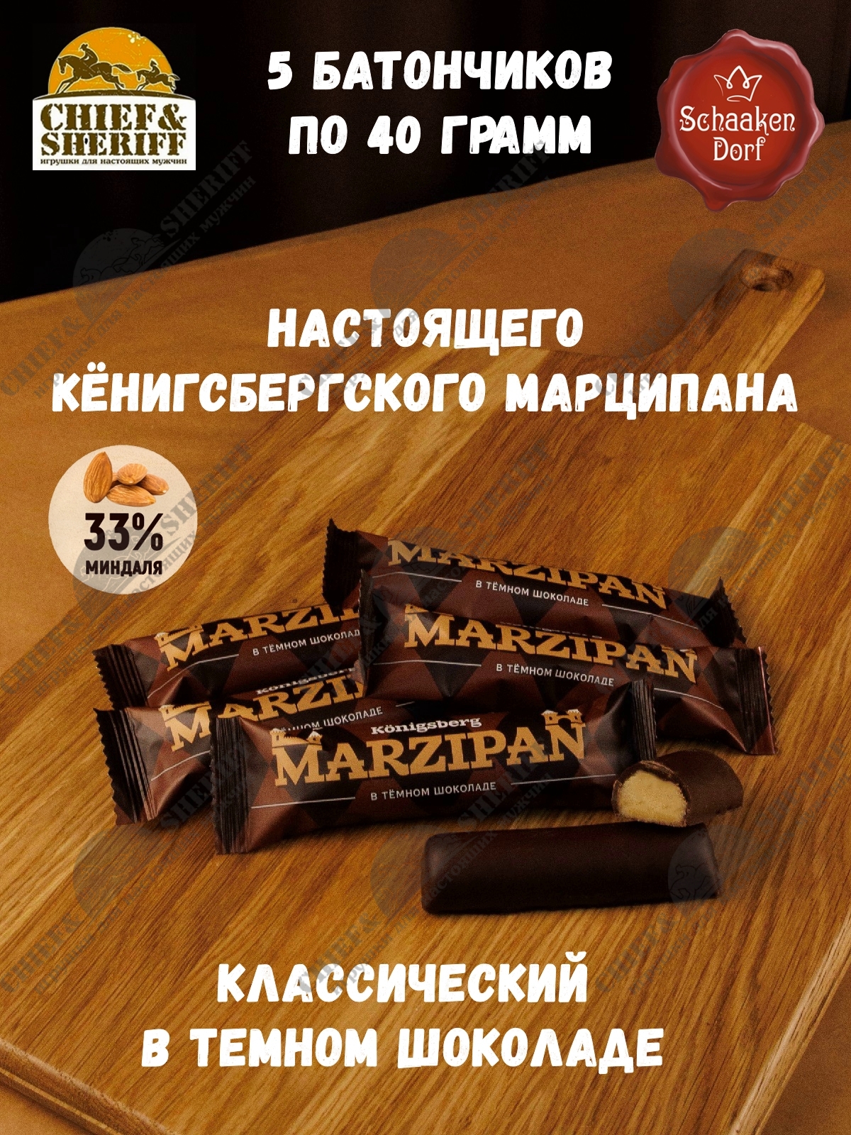Марципановый батончик в темном шоколаде, SCHAAKEN DORF, 5 X 40 гр Марципановый батончик в темном шоколаде, SCHAAKEN DORF, 5 X 40 гр