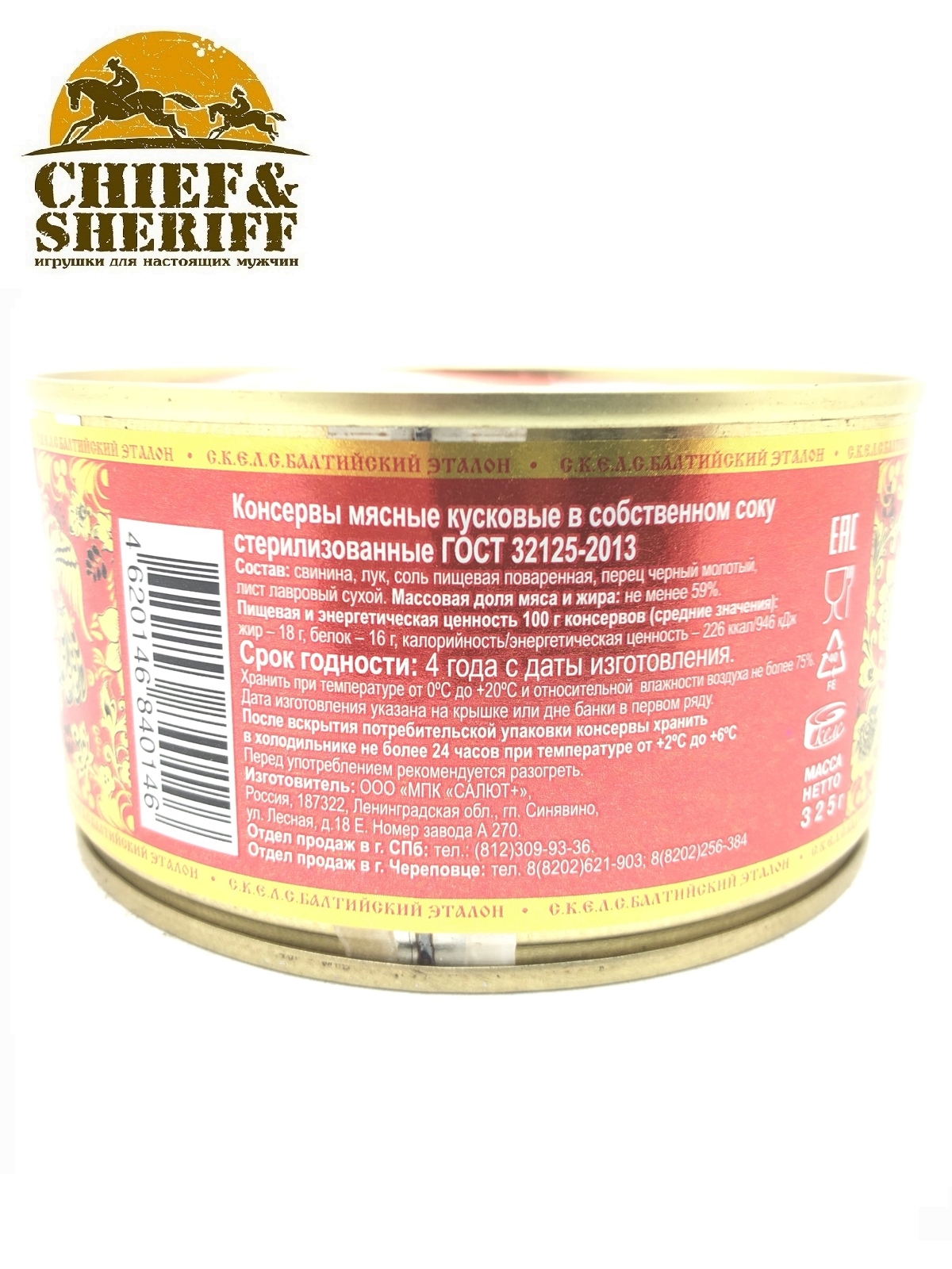 Состав: свинина, лук, соль, черный перец, лист лавровый.