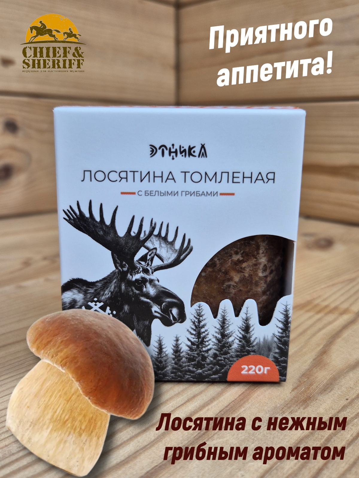 Томленое мясо лося с белыми грибами – это не только изысканный выбор для повседневного стола, но и хорошая идея для подарка близким и друзьям, которые любят кулинарные новинки. Данный продукт представлен в экологически чистом виде, без добавления искусственных консервантов, что делает его безопасным и полезным для здоровья.