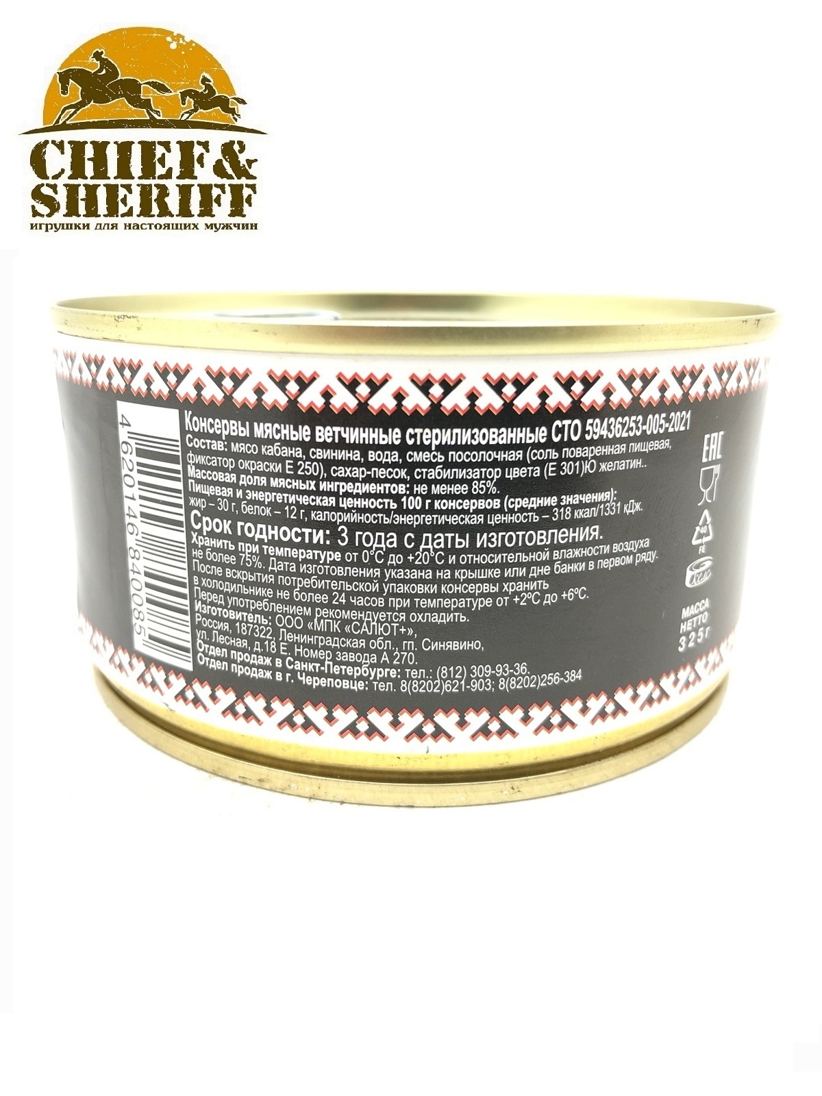 Ветчина из мяса кабана от Балтийская охота - это высококачественный продукт, который придется по вкусу любителям мясных деликатесов. Продукт изготовлен из мяса кабана, что гарантирует его высокое качество и превосходный вкус. Консервы из мяса от Балтийская охота отличаются высоким качеством и натуральным составом. В упаковке 4 банки по 325 грамм каждая, что позволяет наслаждаться этим вкусным и полезным продуктом в любое время. Ветчина из мяса кабана от Балтийская охота станет отличным дополнением к вашему столу и разнообразит ваше меню.