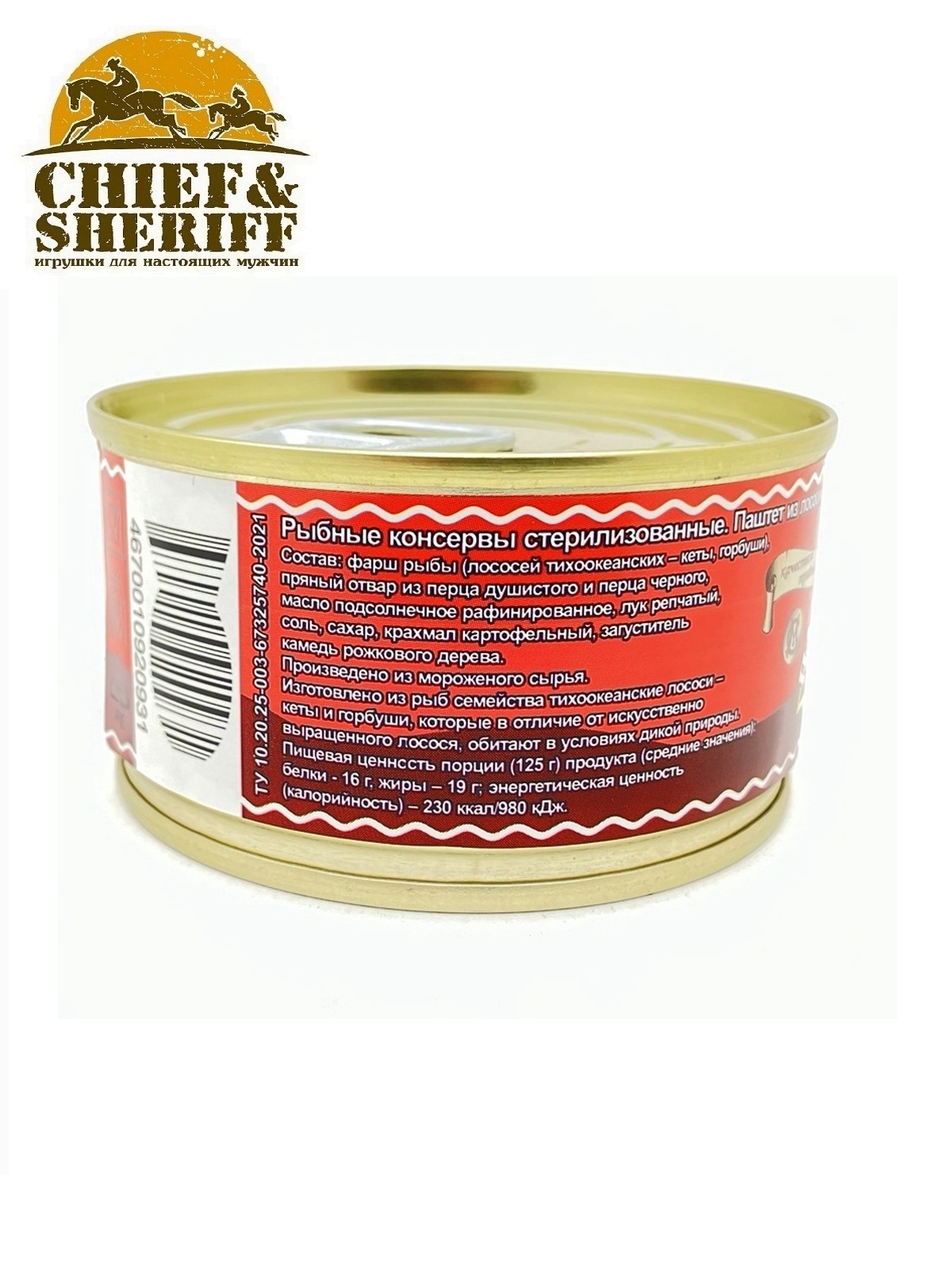 Паштет из лососей тихоокеанских "Угощение от моря" - это высококачественный продукт, который придется по вкусу любителям мясных деликатесов. В его состав входят фарш рыбы (кета и горбуша), пряный отвар из перца, масло, лук, крахмал, соль, сахар и загуститель. Благодаря использованию в составе фарша двух видов лосося, паштет обладает насыщенным вкусом и ароматом. Пряный отвар из перца добавляет пикантности, а масло, лук и крахмал делают паштет нежным и сочным. Соль, сахар и загуститель обеспечивают гармоничное сочетание вкусов и консистенцию. Упаковка паштета выполнена в виде консервной банки, что обеспечивает сохранность продукта и удобство его хранения. Паштет из лососей тихоокеанских "Угощение от моря" станет отличным дополнением к вашему столу и разнообразит ваше меню.