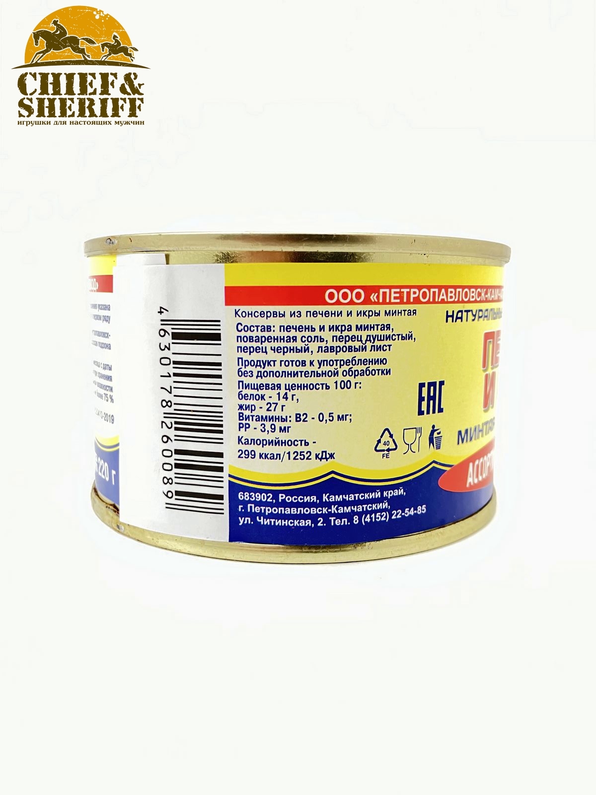 Деликатесное ассорти, изготавливаемое на Камчатке, состоит из печени и икры минтая – ценной рыбы семейства тресковых. Консервы обладают прекрасными вкусовыми свойствами. При изготовлении «Камчаттралфлот» использует только качественные ингредиенты. В деликатесном ассорти содержатся витамины группы A, B, C, D и ряд других полезных компонентов: фосфор, железо, натрий, калий, магний.