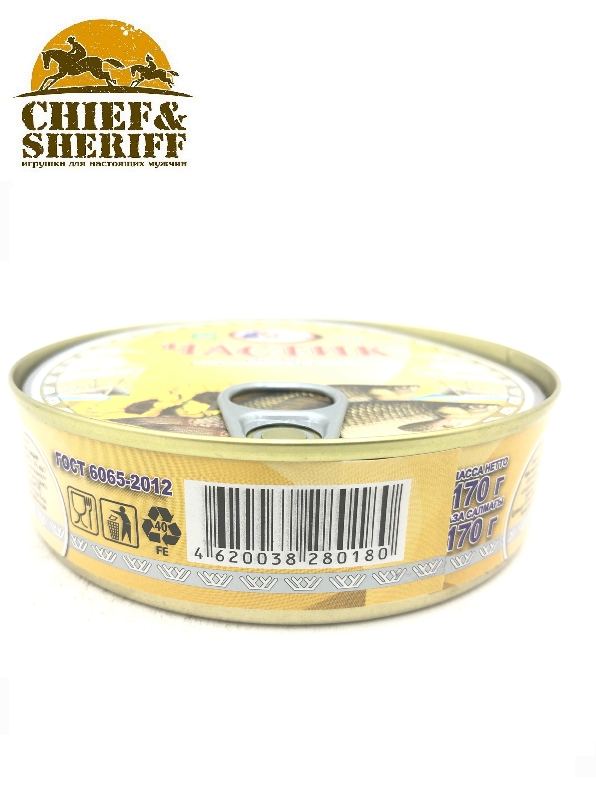 Состав рыбных консервов: рыба частиковых пород (плотва), масло растительное рафинированное дезодорированное, соль, мука пшеничная.