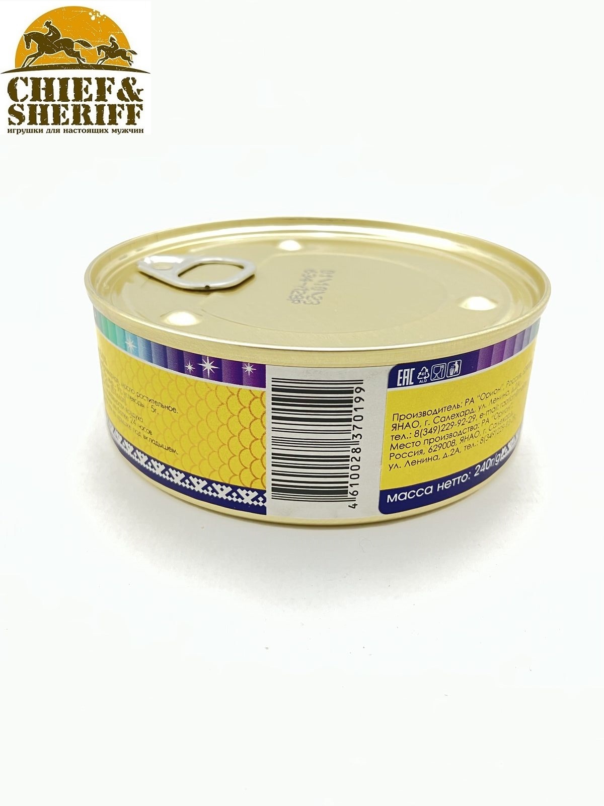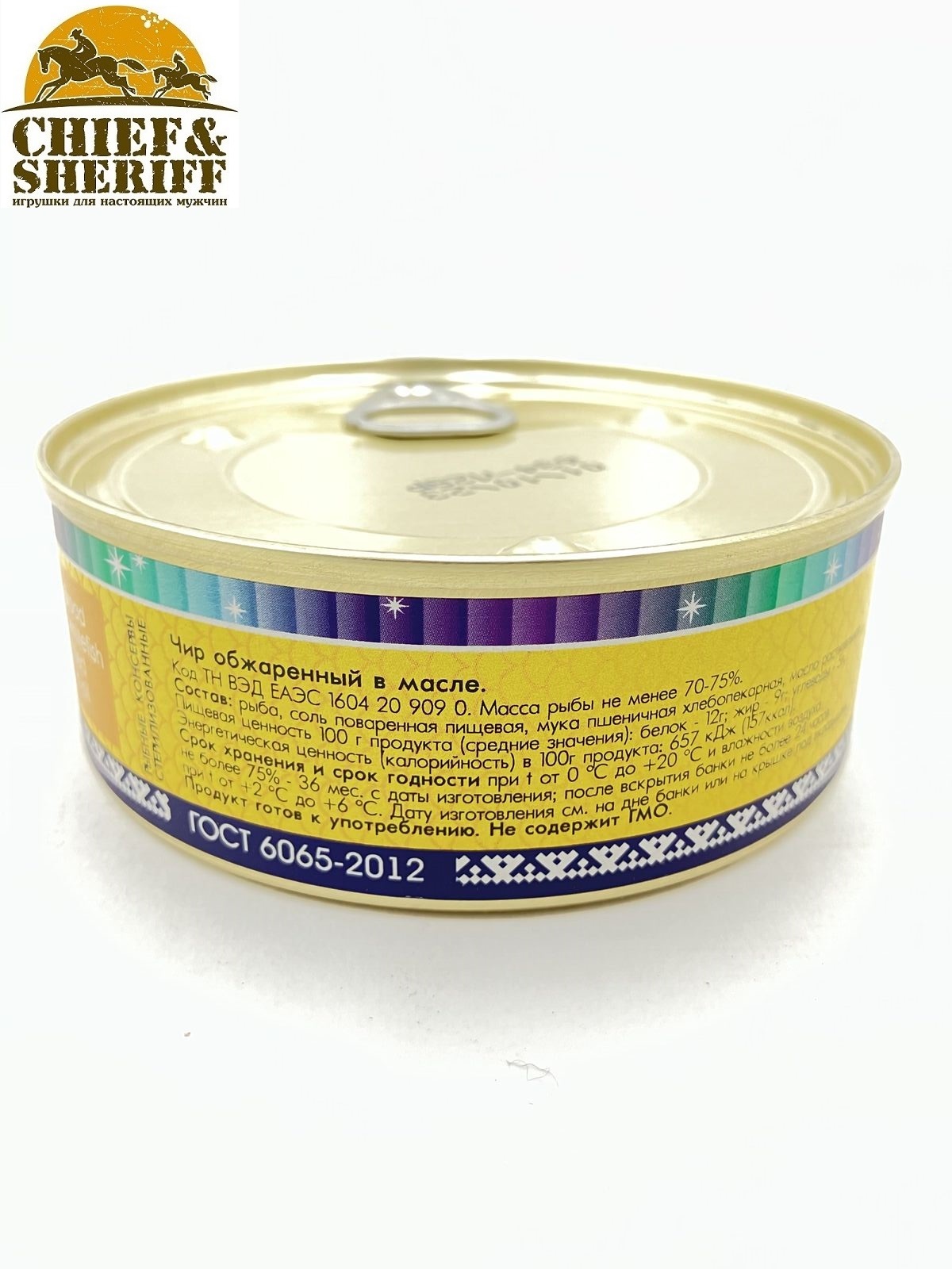 Консервированный чир (щёкур), обжаренный в масле, сохраняет питательные вещества и натуральный вкус долгое время. Плотно заполненные банки, закатанные вручную подойдут для длительных пеших переходов. Питательная рыба отлично восстановит силы на привале.