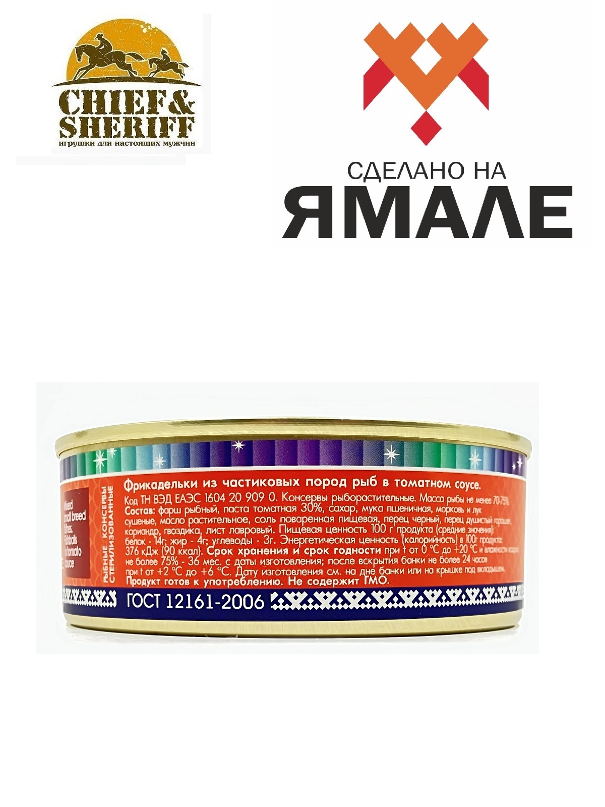 Состав: фарш рыбный, паста томатная 30%, сахар, мука пшеничная, крупа рисовая, морковь и лук сушёные, масло растительное, соль поваренная пищевая, перец черный, перец душистый горошек, кориандр, гвоздика, лист лавровый.
