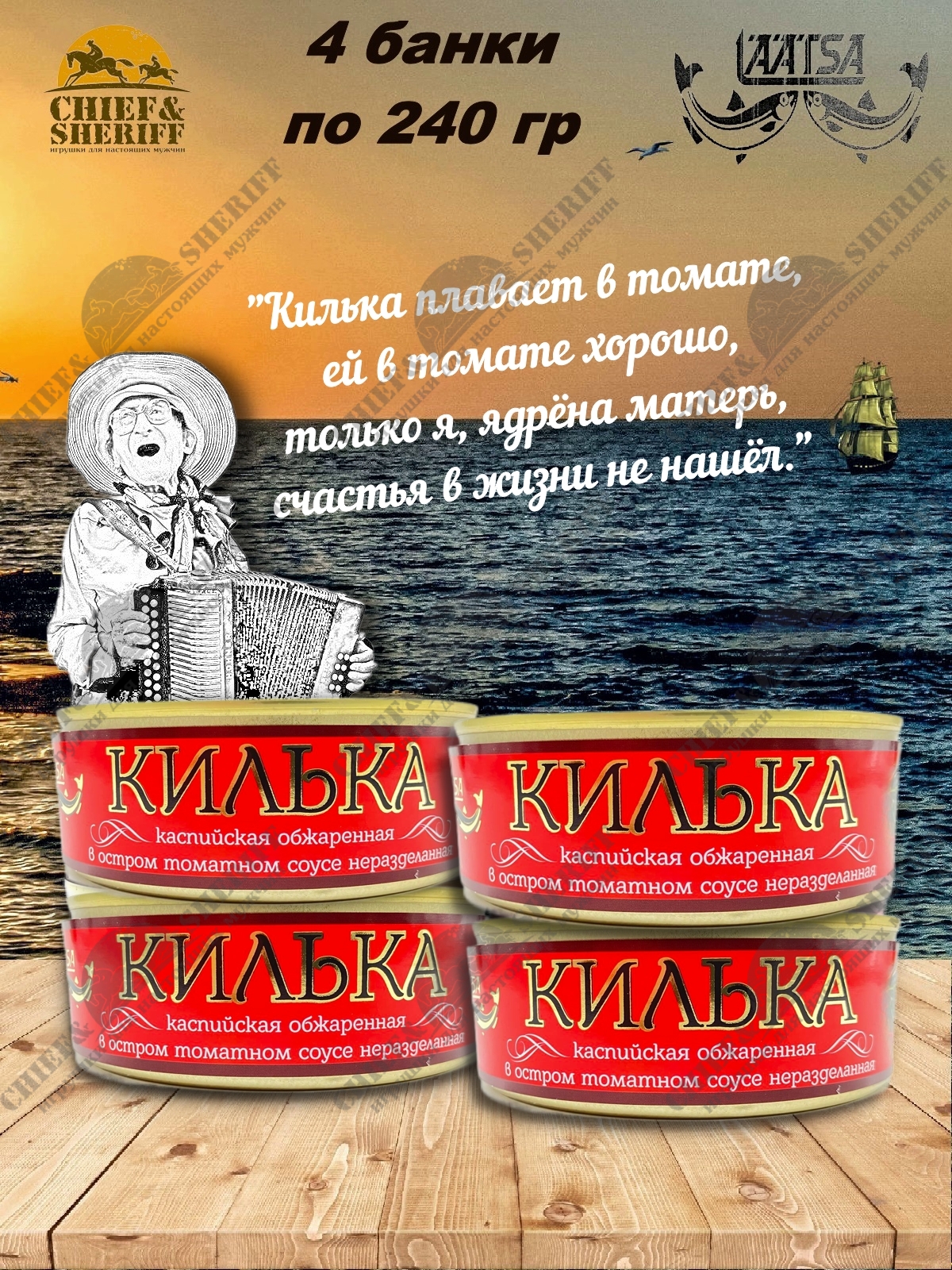 Килька каспийская обжаренная в остром томатном соусе, Laatsa, 4 X 240 гр Килька каспийская обжаренная в остром томатном соусе, Laatsa, 4 X 240 гр Килька каспийская обжаренная в остром томатном соусе, Laatsa, 4 X 240 гр