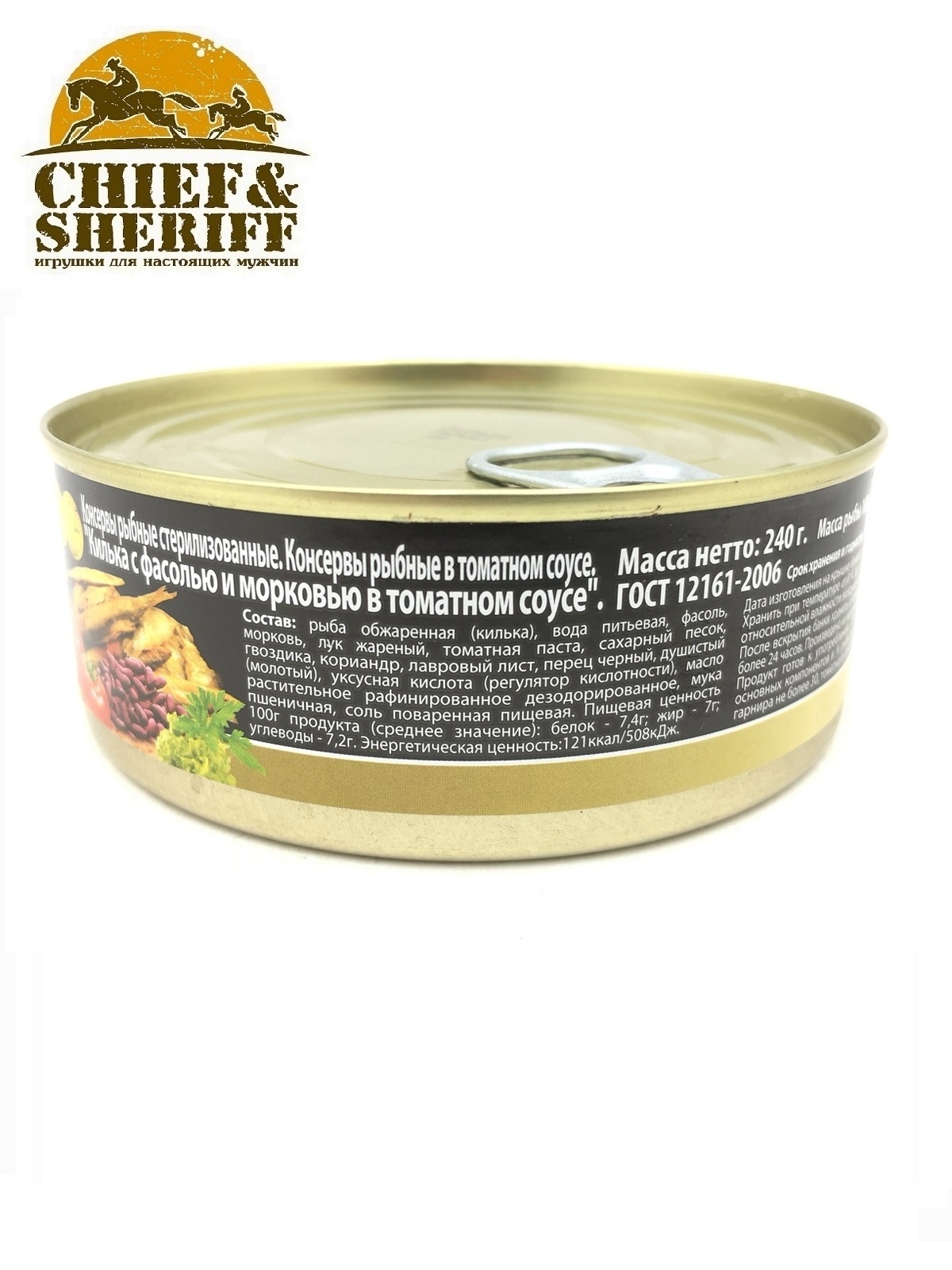 - Килька обжаренная в томатном соусе с фасолью и морковью, Соцпуть, 6 X 240 гр.