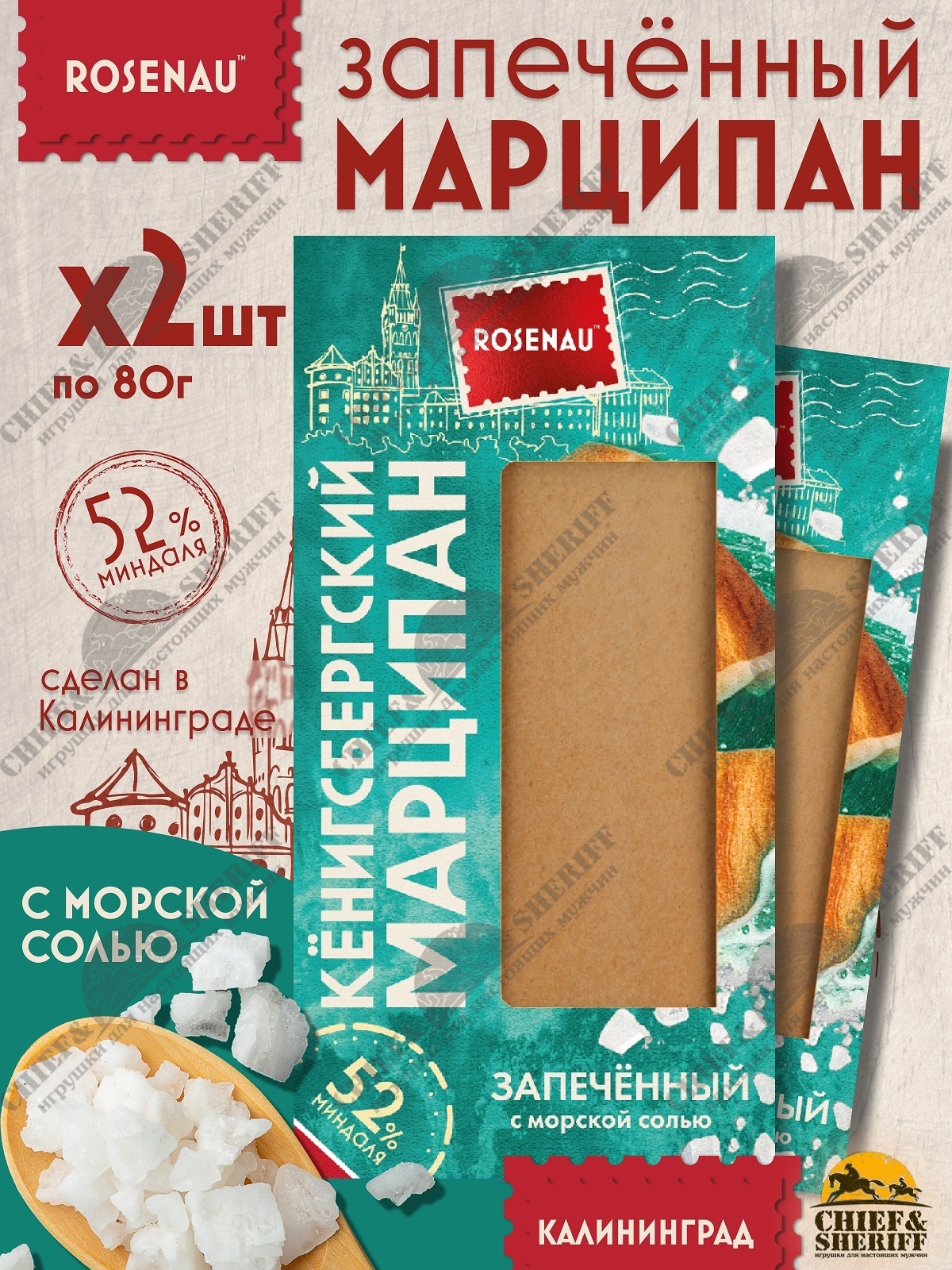 Марципан запеченный с морской солью (миндаль 52%), ROSENAU, 2 X 80 гр Марципан запеченный с морской солью (миндаль 52%), ROSENAU, 2 X 80 гр