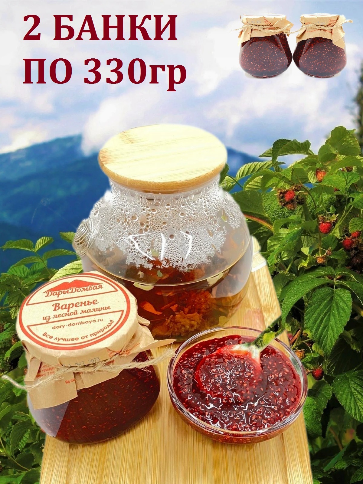 Варенье из лесной малины, Дары Домбая, 2 X 330 гр