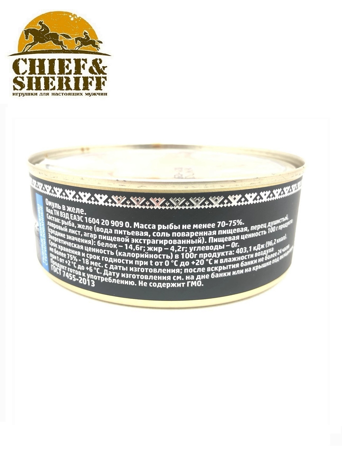 Натуральный омуль в желе из агара с добавлением лаврового листа, душистого перца и небольшого количества соли — удачный выбор для праздничного стола, пикника или туристического похода. Производитель этого продукта — бренд премиальных рыбных деликатесов «Вкус Арктики», производство расположено в Салехарде. Главной «фишкой» бренд выбрал сочетание высочайшего качества рыбы и инновационной упаковки с прозрачной крышкой.
