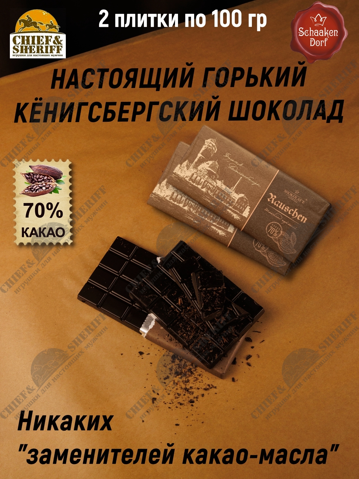 Шоколад горький 70%, "Rauschen" Светлогорск, SCHAAKEN DORF, 2 X 100 гр