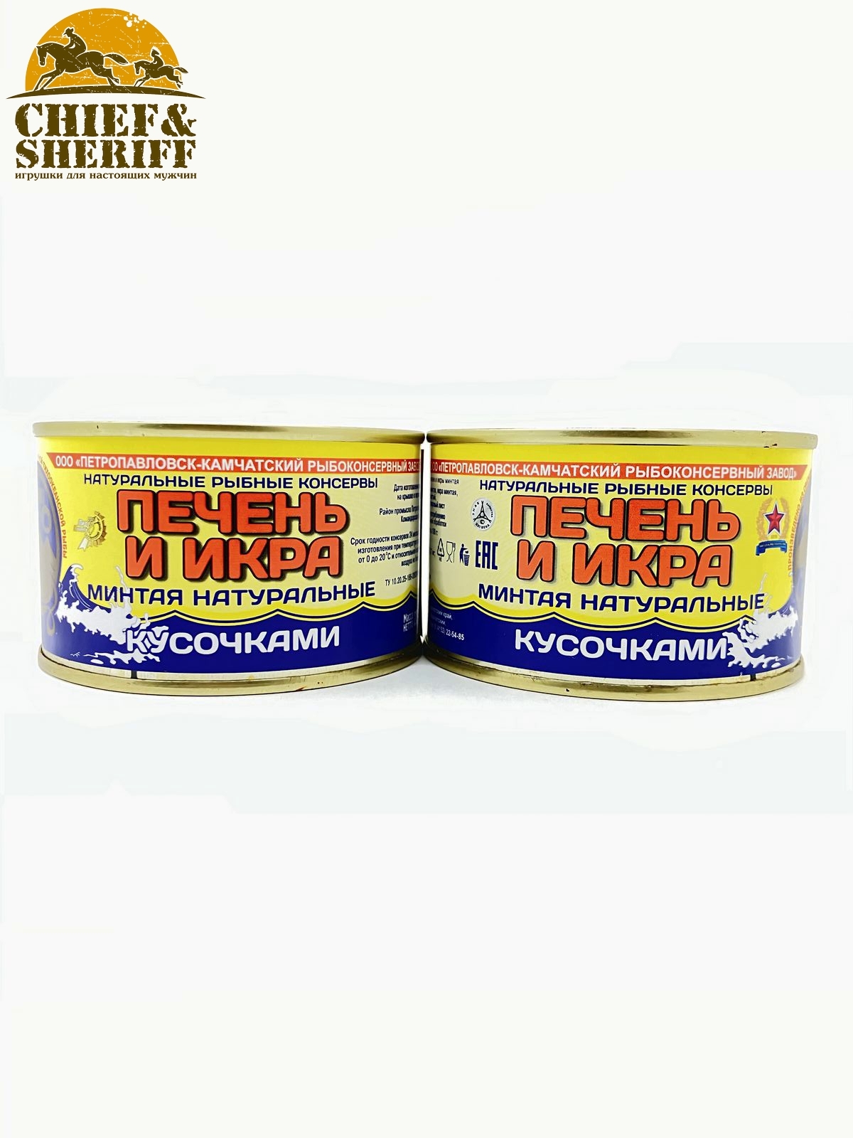 Печень и икра минтая натуральные кусочками, ПКРКЗ, 2 X 227 гр