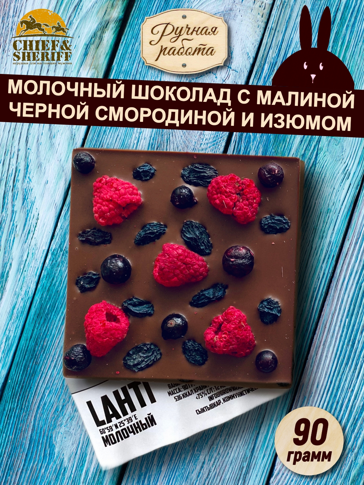 Молочный шоколад LAHTI. Малина,чёрная смородина, изюм чёрный, Brown Rabbit, 90гр Молочный шоколад LAHTI. Малина,чёрная смородина, изюм чёрный, Brown Rabbit, 90гр