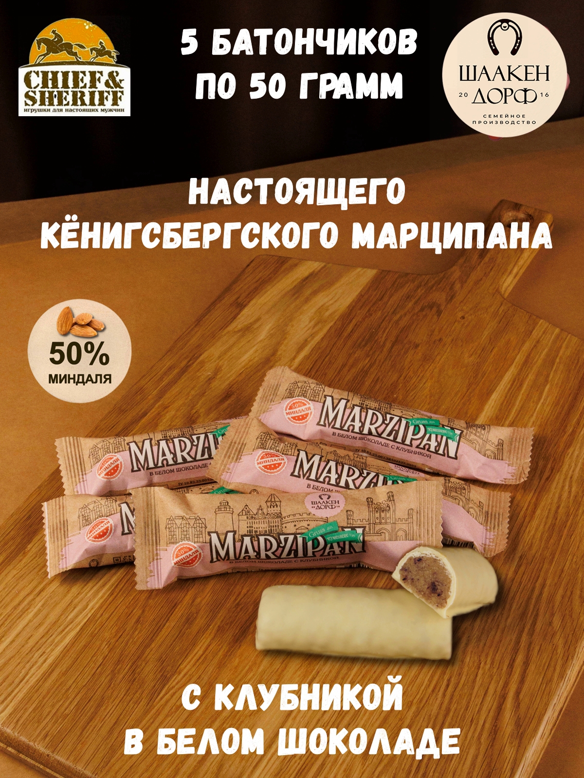 Марципановый батончик в белом шоколаде с клубникой, SCHAAKEN DORF, 5 X 50 гр Марципановый батончик в белом шоколаде с клубникой, SCHAAKEN DORF, 5 X 50 гр