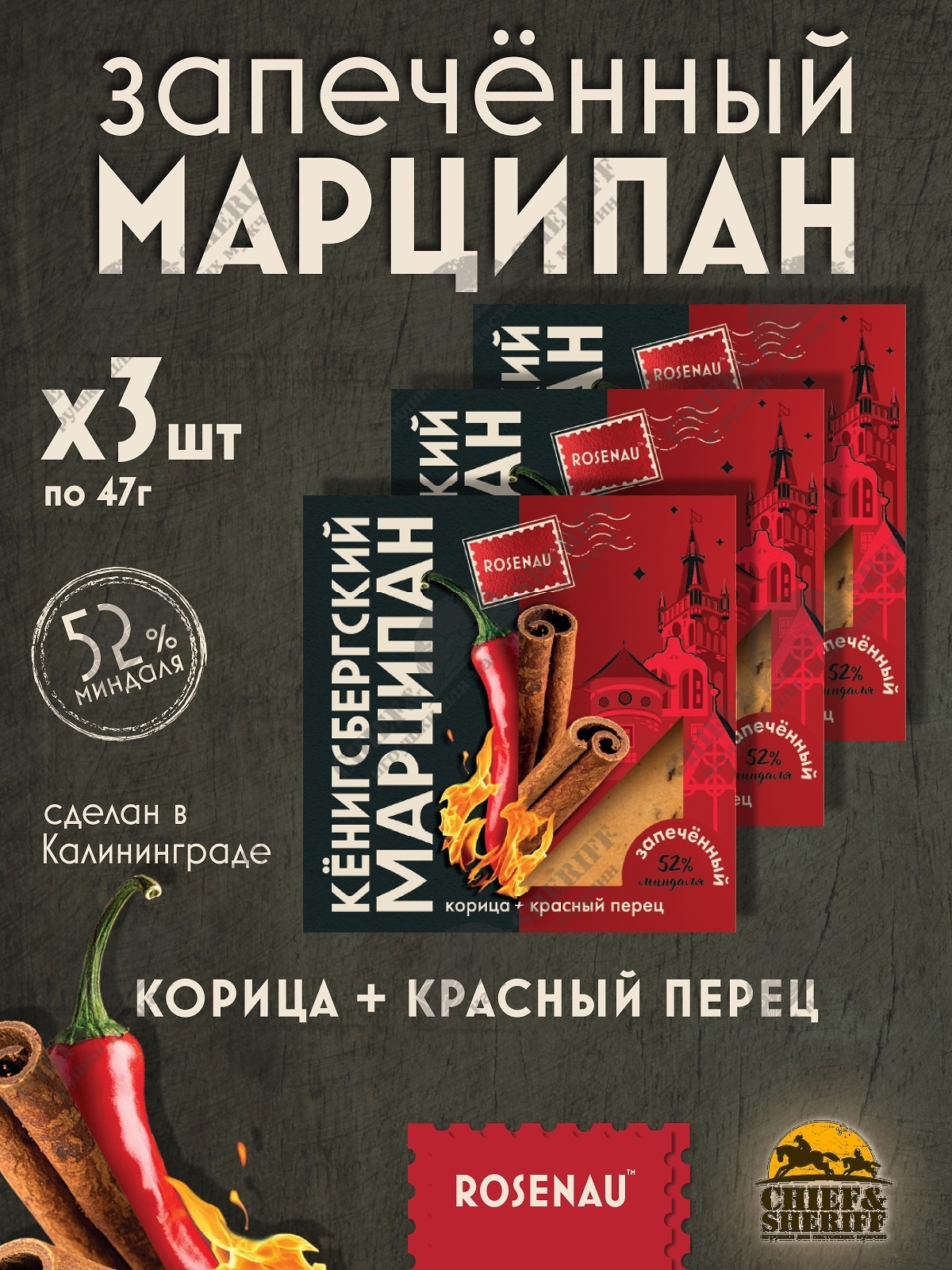 Марципан запеченный с корицей и перцем (миндаль 52%), ROSENAU, 3 X 50 гр Марципан запеченный с корицей и перцем (миндаль 52%), ROSENAU, 3 X 50 гр
