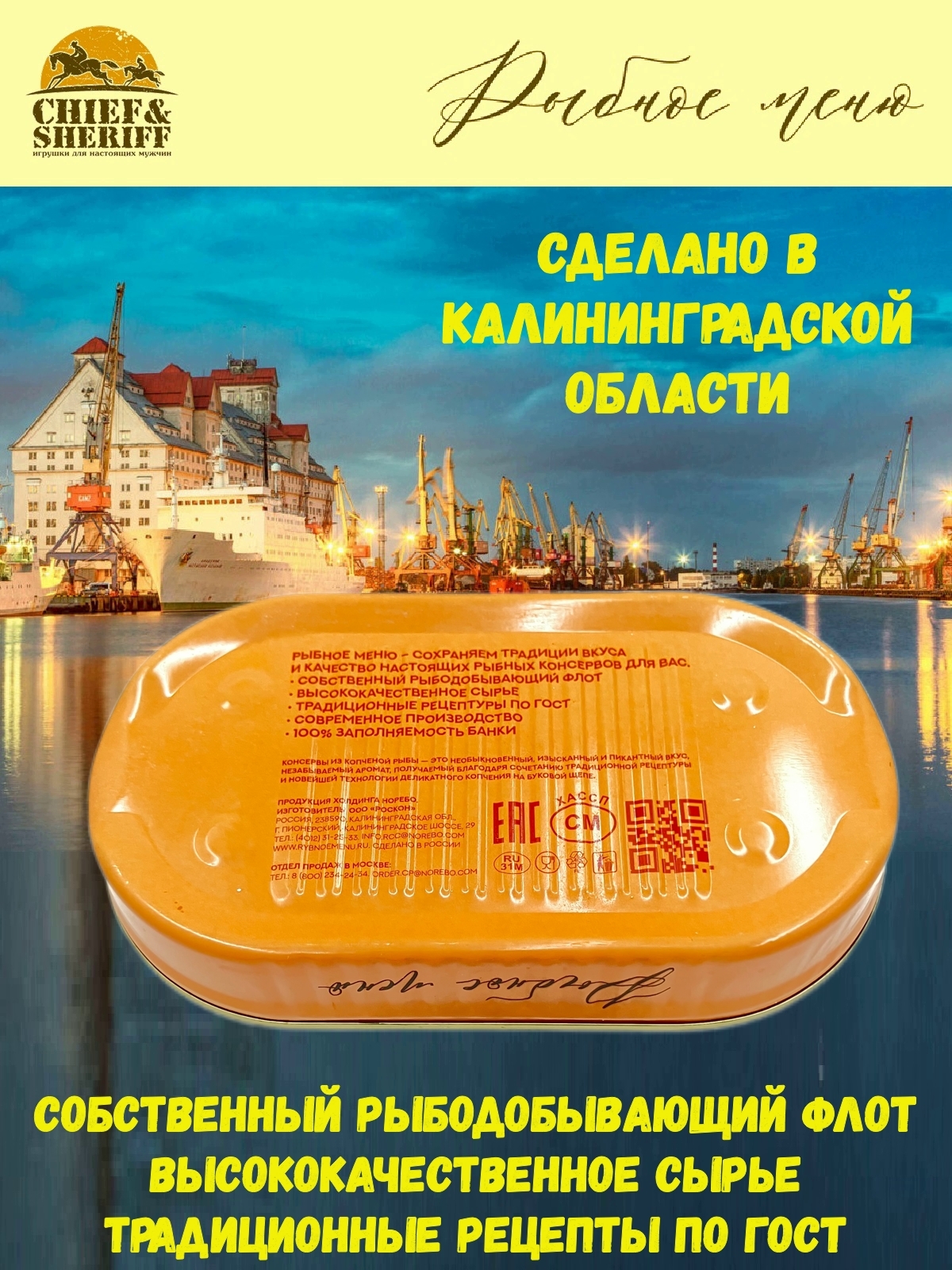 Шпроты из балтийской кильки от бренда Рыбное Меню – это превосходное сочетание традиционного вкуса и высокого качества. Эти рыбные консервы прекрасно подойдут для любителей рыбных деликатесов и станут отличным дополнением к вашему столу.