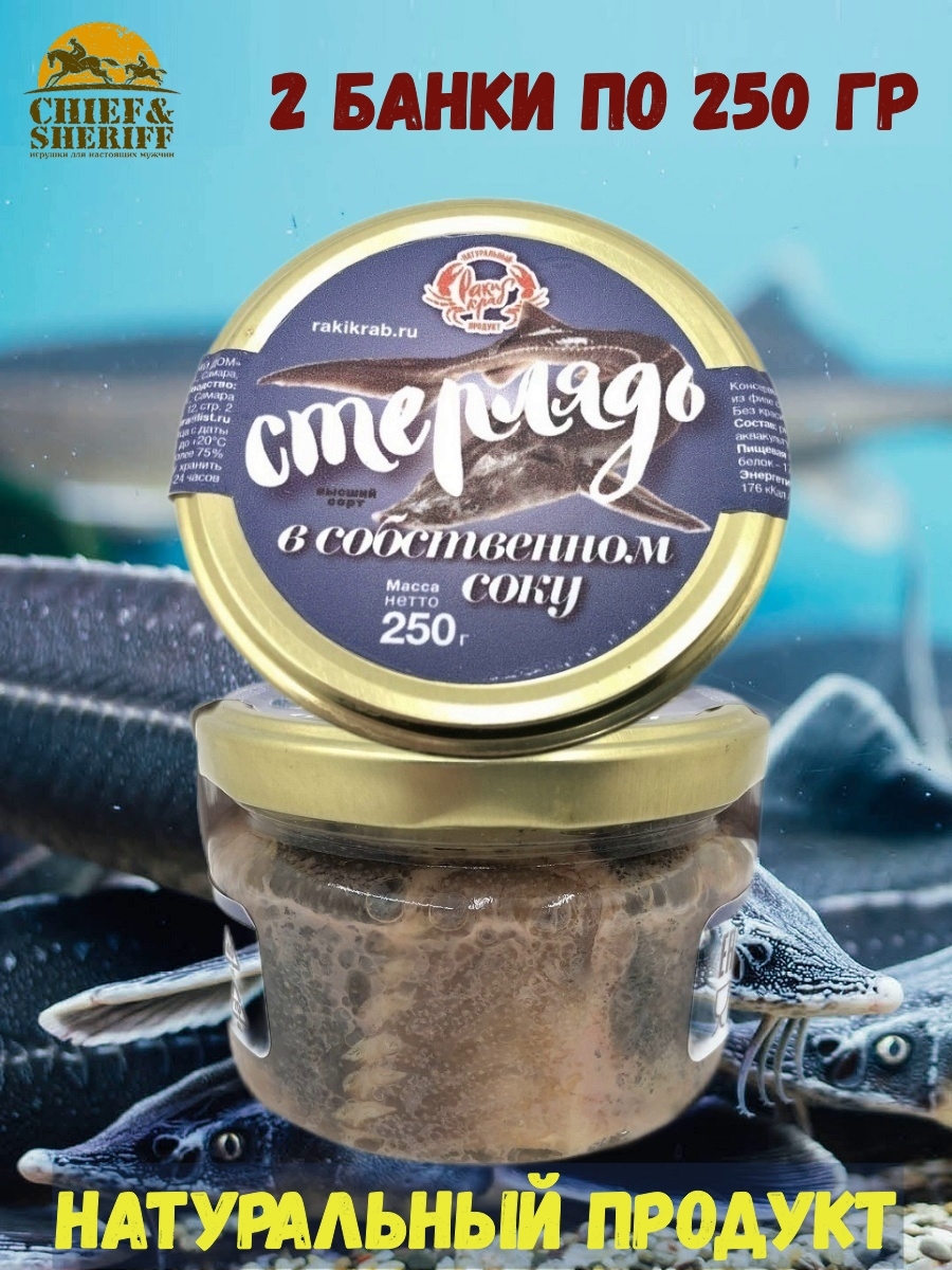 Стерлядь натуральная, филе в собственном соку,РакиКраб, 2 Х 250 гр