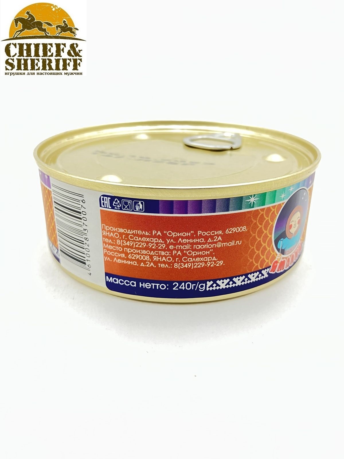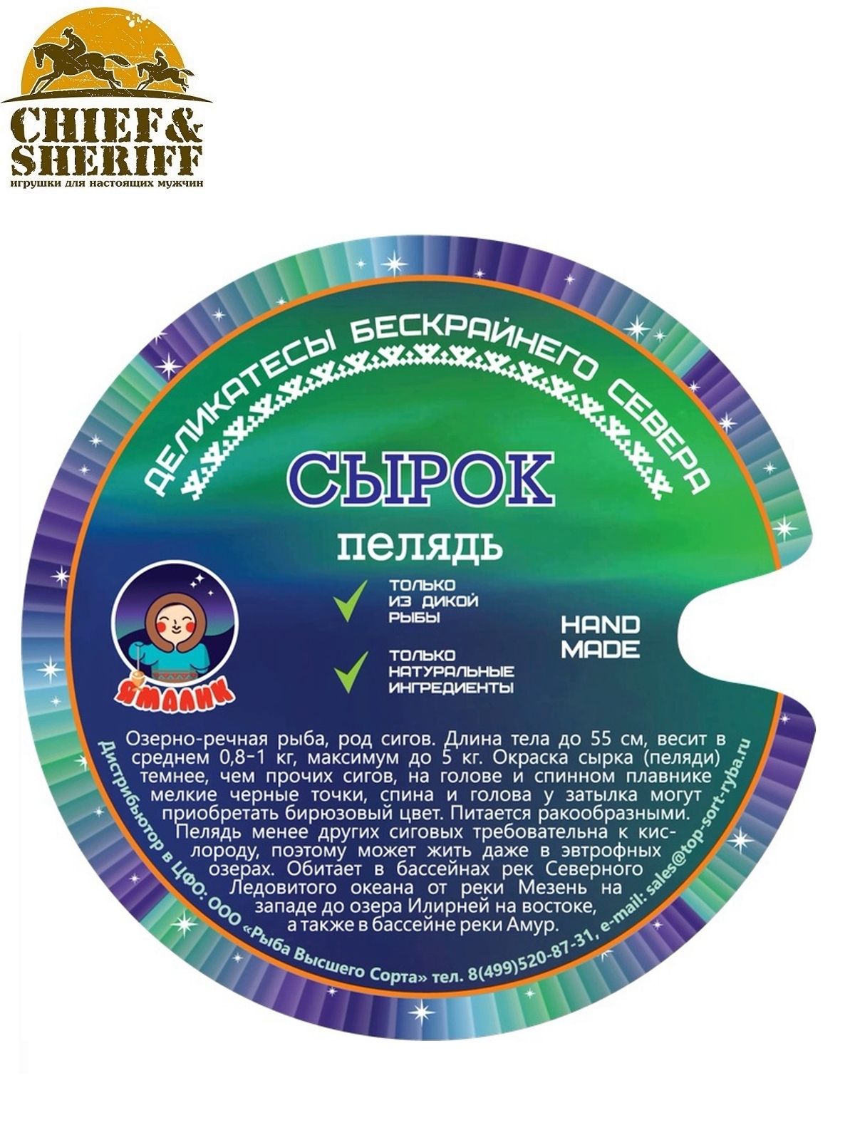 Сырок, или пелядь, — северный речной хищник. Относится к роду сиговых. Обитает в акватории рек Малой и Большой Оби. Осторожная серебристая рыба с темно-серой спиной. Является промысловой и разводится искусственно. Питательное низкокалорийное мясо содержит большое количество белка. Жир пеляди полезен и богат витаминами, ненасыщенными кислотами омега-3. Нежное деликатесное мясо лишено мелких косточек. Консервированный копченый сырок в масле можно употреблять как самостоятельное блюдо или в виде суповой заправки. Укладка рыбных кусков и закатка производятся вручную. Прочные банки сохраняют вкус и качество продукта и позволяют брать его в поход.