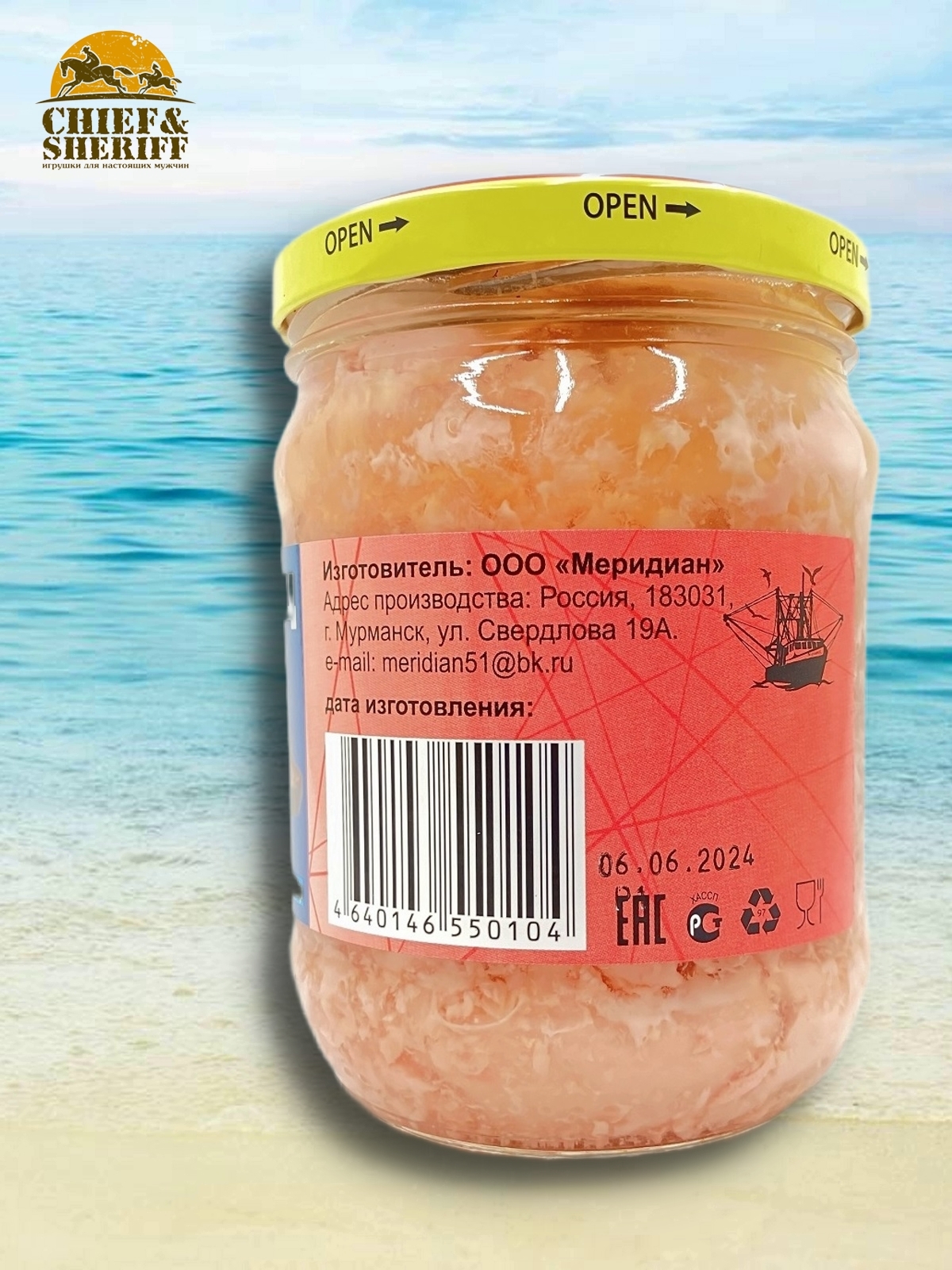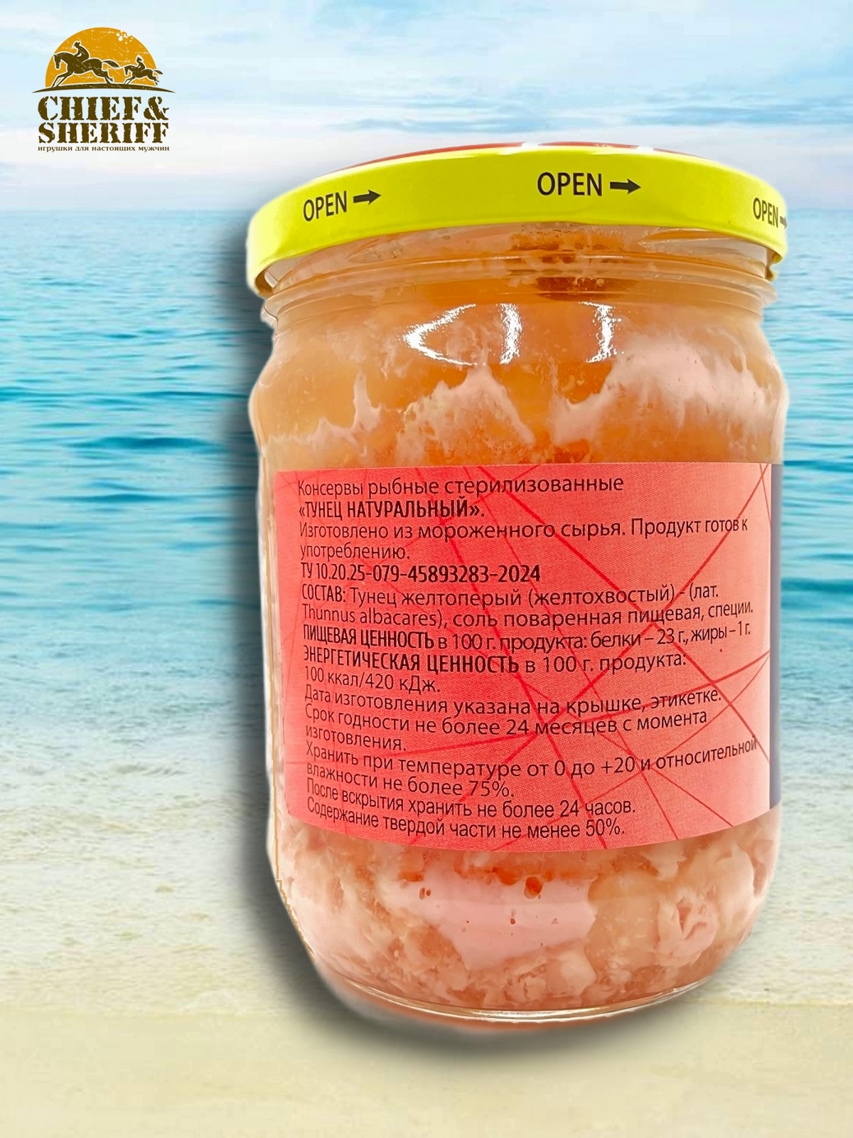 - Тунец желтоперый натуральный, Меридиан, 1 X 500 гр