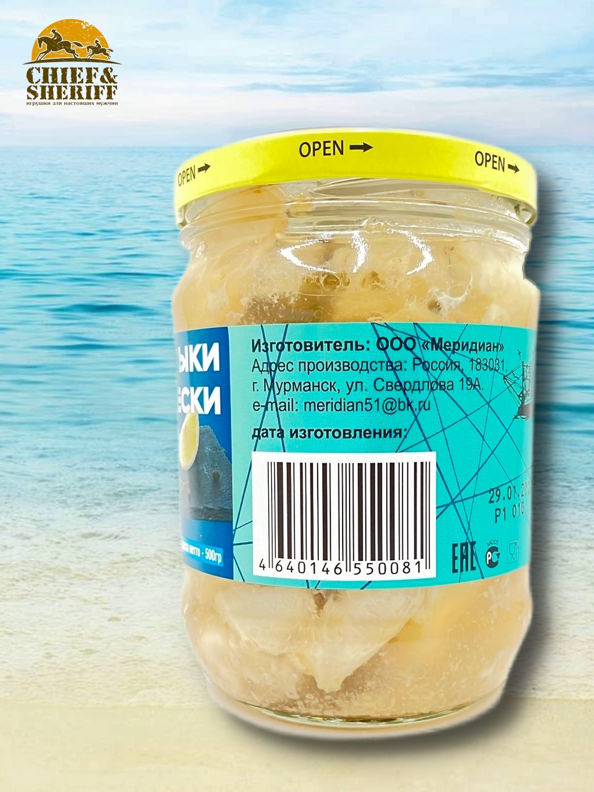 Консервы Меридиан подвергаются стерилизации, что гарантирует их долгосрочное сохранение без потери качества и вкуса. Форма выпуска консервов — куски, что делает их удобными для использования в различных блюдах и приготовлении.
